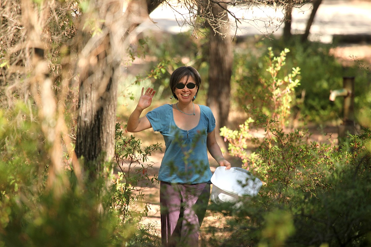Unter den hohen Bäumen wurde es früh ziemlich kühl, so dass ich meine warme Jacke zum Abendessen anzog. Das Essen schmeckte zusammen mit einem Bier (Entelchen und ich) vorzüglich. Als ich anschließend spülte, suchte Tomoko mit unserem Geigerzähler die nahe Umgebung nach radioaktiver Strahlung ab. Was sie herausfand war ziemlich schockierend. An unserem Platz war die Strahlung mit ca. 0,2 MikroSievert / Std. noch einigermaßen tolerabel, das ganze Gelände hatte Werte von 0,3 - 0,4, aber auf dem Fahrweg, der mit einer Kiesschicht bedeckt war, maß Tomoko stolze 0,7, ein viel zu hoher Wert… !!! |