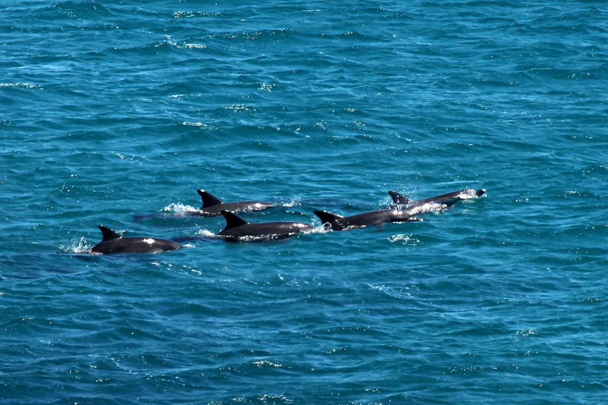 Nachdem wir fertig waren und alles eingepackt hatten, fuhren wir um 8.45 h los. Zunächst schauten wir noch mal beim Sugarloaf Rock vorbei. Auch heute war leider kein Tropicbird zu sehen, dafür sahen wir noch mal eine Gruppe Delfine (11-12) in der Bucht. |