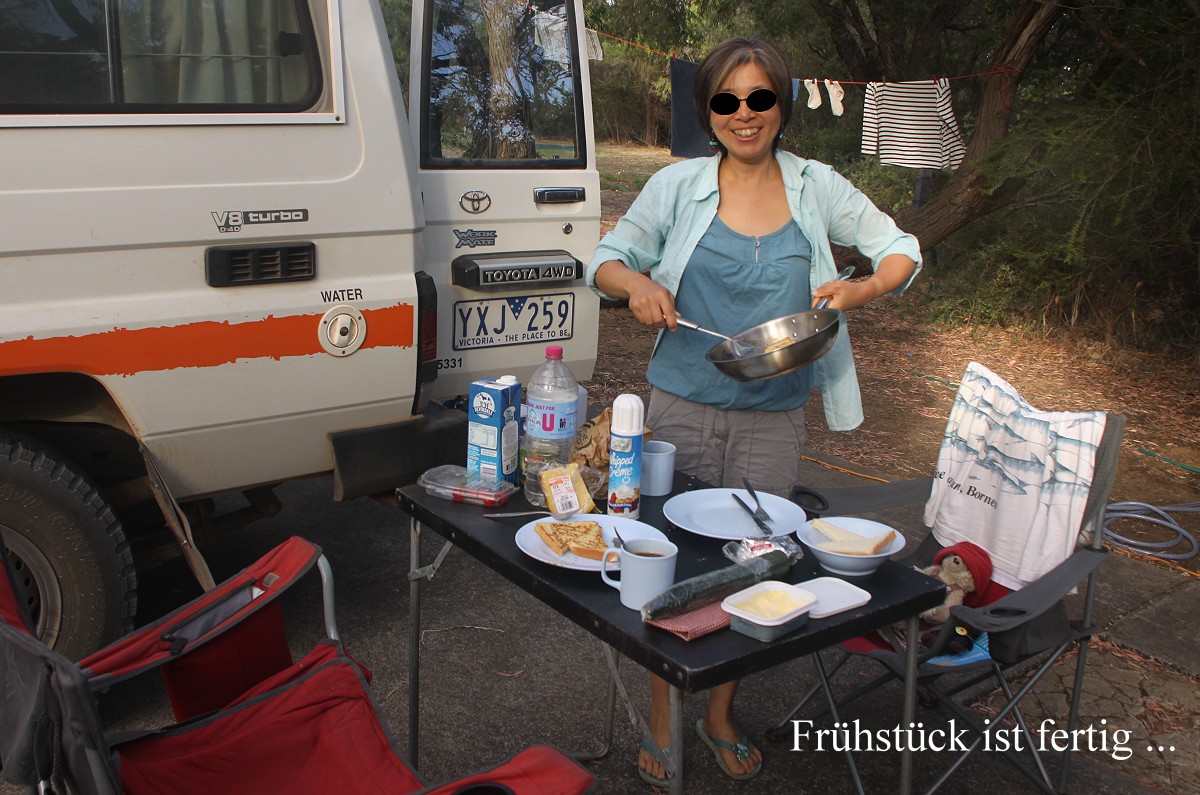 zu. Langsam meldete sich der Hunger. Somit fuhren wir zurück und bereiteten unser Frühstück vor.
