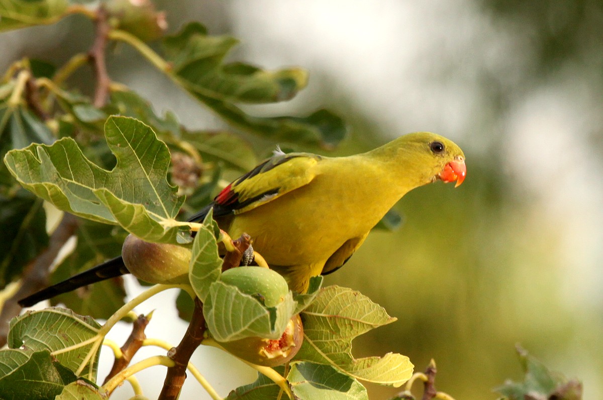 Gegenüber steht ein Feigenbaum mit leckeren Früchten, wie wir selber probierten. Dieser Baum war aber auch Anziehungspunkt für andere Papageien (Ringnecks und Regent Parrots). |