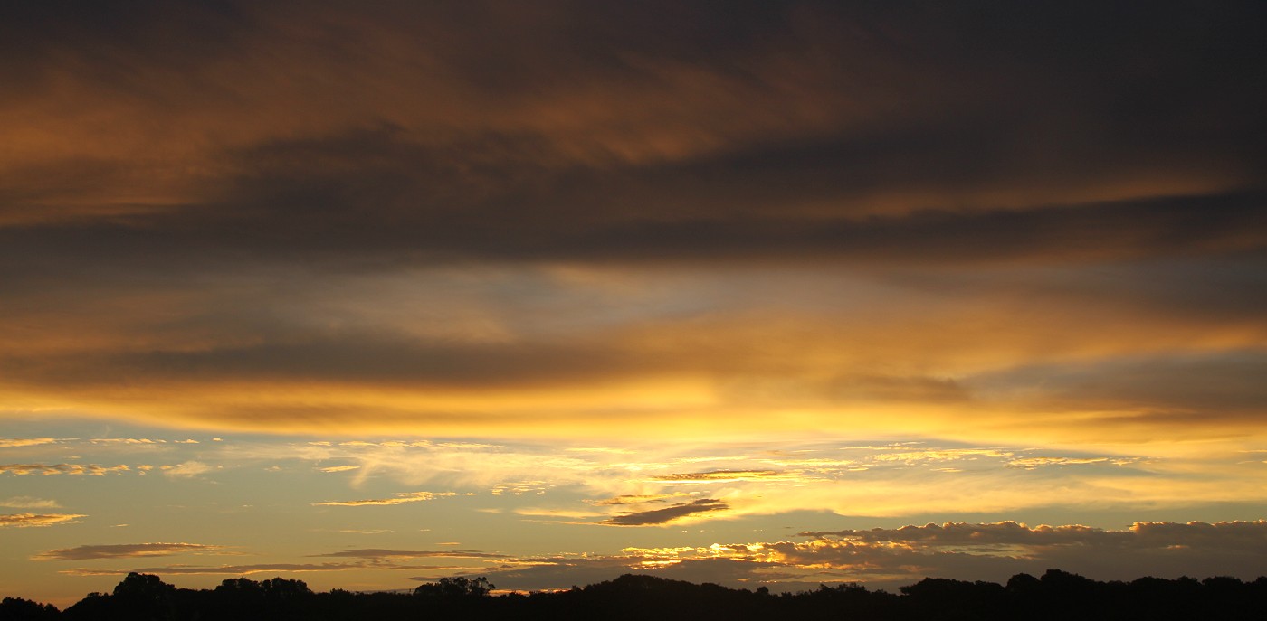 Ich spülte noch alles in der Campingküche und schaute mir dann den Sonnenuntergang an. Inzwischen war die Sonne sehr tiefstehend wieder zu sehen, nachdem sie vorher zeitweise hinter Wolken versteckt war. |