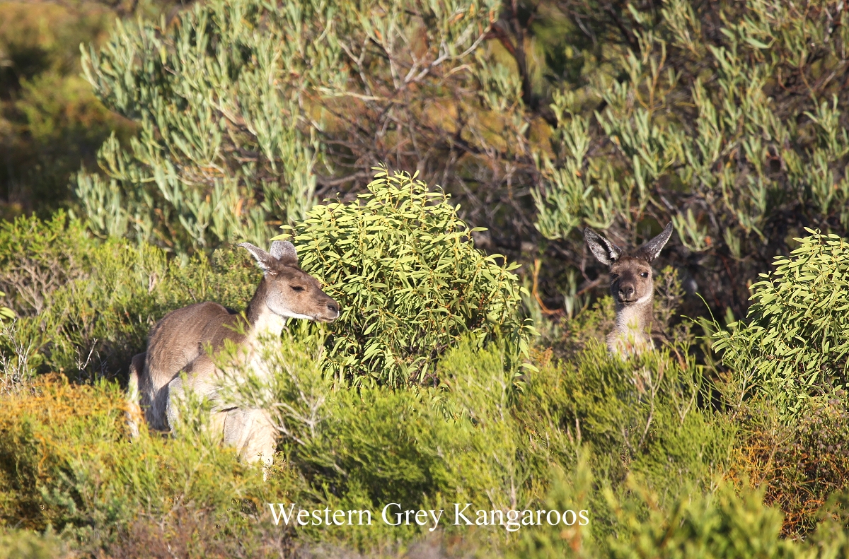 Gegen 7.00 h wurden wir wach. Das Wetter hatte sich deutlich gebessert. Es wehte zwar ein starker Wind, der zwischenzeitlich die Richtung gewechselt hatte, nicht mehr westlich vom Indischen Ozean, sondern mehr von Südosten, doch die Wolkendecke hatte schon große Lücken. Zum Frühstück gab es wie immer Cornflakes und Toast. Gegen 9.00 h waren wir abfahrbereit. Tomoko kaufte noch schnell in der nahen Bäckerei etwas Kuchen, dann tankten wir noch voll und fuhren los auf der neugebauten Straße "Indian Ocean Hwy" Richtung Norden. Wir fuhren durch eine hügelige einsame Landschaft, bewachsen mit vielen kleinen stacheligen grünen Büschen. Immer wieder tauchten in der Nähe der Straße gewaltige schneeweiße Sanddünen auf. Hinweisschilder am Straßenrand wiesen daraufhin, dass in diesem Gebiet Wildtiere wie Kängurus, Emus und Echidnas beheimatet sind, doch außer ein paar leider überfahrenen Kängurus bekamen wir wenig Tiere zu sehen. Bei einem kurzen Fotostopp entdeckten wir 3 kleine Vögelchen (Australian Pipit) im Straßengraben. Einmal stoppten wir kurz, als unmittelbar am Straßenrand ein Falke (Hobby) auf einem Strauch sitzend auftauchte. |