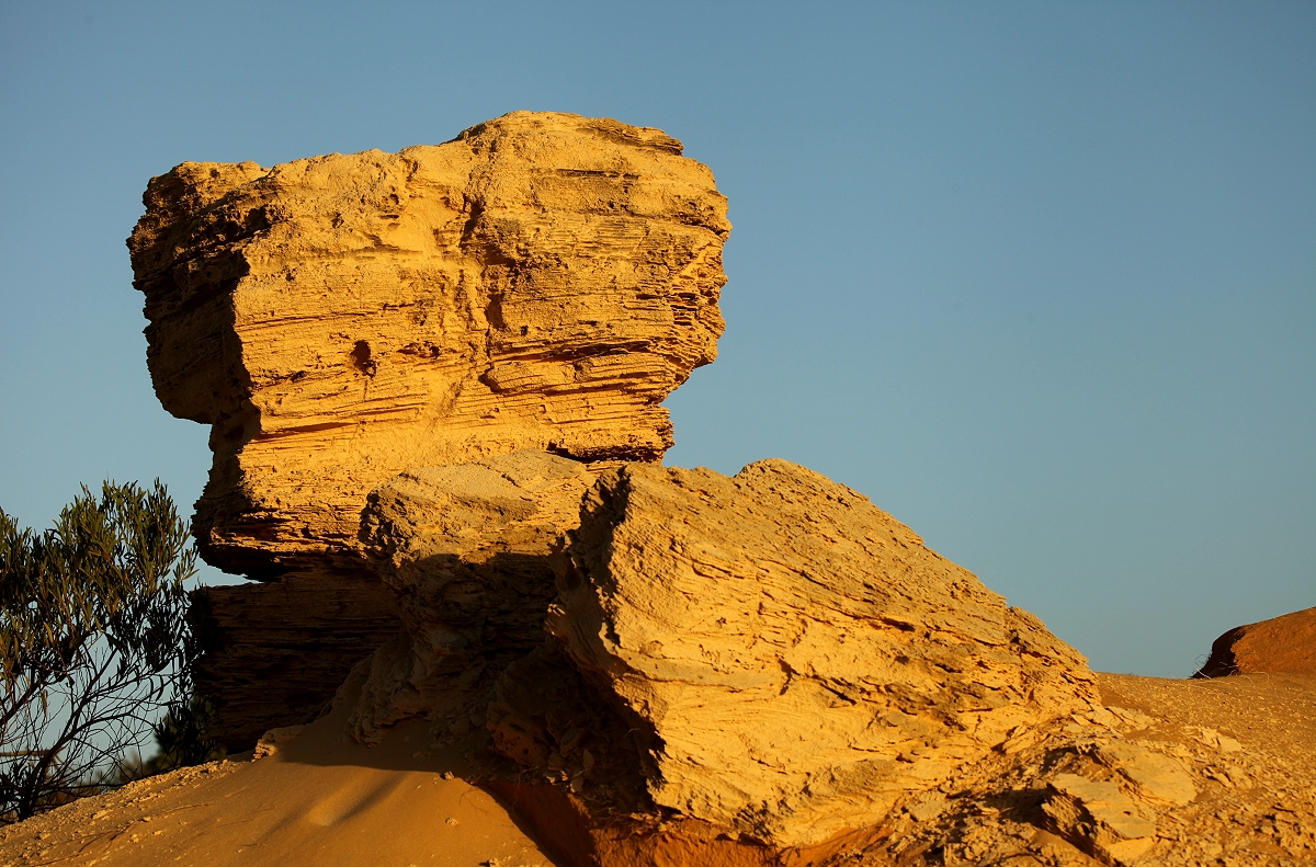 Nun hieß es besonders langsam zurückzufahren, da in der Dämmerung die Tiere aktiv werden und wir wollten auf gar keinen Fall ein Känguru überfahren. Somit brauchten wir eine halbe Stunde um die 17 km bis zum Campingplatz zu fahren. Dort angekommen ging Tomoko unter die Dusche, während ich mit dem Schreiben meines Tagebuchs fortfuhr. Anschließend duschte ich natürlich auch noch. Die Dusche war die beste bisher auf der ganzen Reise, sauber und mit einem kräftigen Strahl. Als ich zum Auto zurückkam, hatte Tomoko schon alle Fotos auf unserer externen Festplatte gespeichert. Die schauten wir uns gemeinsam an. Das hatte sich wirklich gelohnt, dass wir am Abend nochmal zu den Pinnacles gefahren waren. Das Abendlicht ließ die Steine und den Sand in kräftigen Farben leuchten, faszinierend… Gegen 21.45 h machte sich bei uns die Müdigkeit bemerkbar und wir begannen unser Bett zu bauen. Anschließend gingen wir gleich schlafen. |