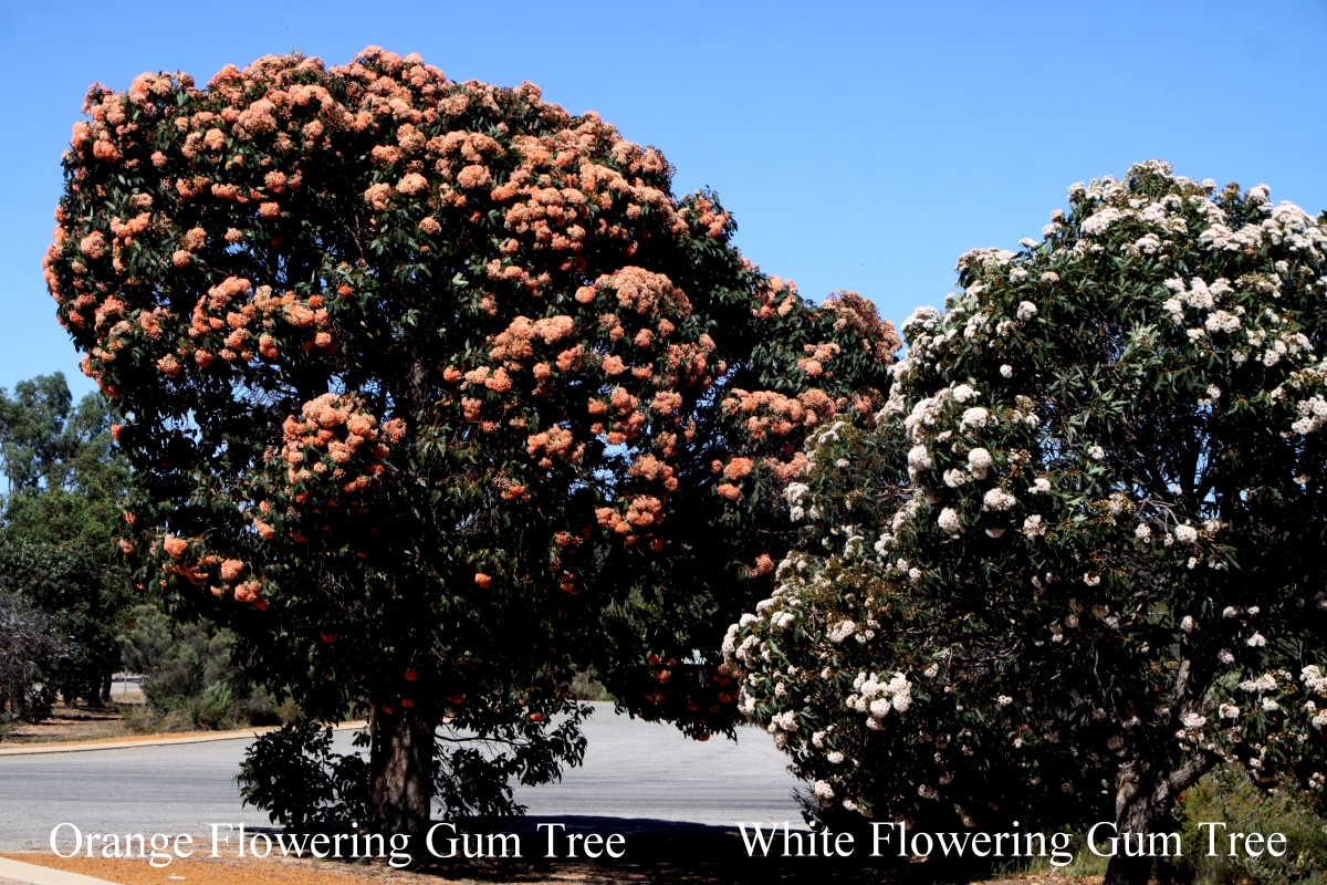 Wir fuhren weiter in den Ort Badgingarra, ein einsames Nest, bestehend aus einer Tankstelle, einer Taverne und ein paar Häusern. Die Temperatur war inzwischen auf 24° angestiegen. Der lebhafte Wind war wieder aufgefrischt. Wir suchten einen kleinen Supermarkt, doch den gab es nicht. Stattdessen sahen wir auf einem Parkplatz viele Vögel, Willy Wagtail, Rufous Whistler, Magpie mit Jungem, Thornbill, Brown Honeyeater und New Holland Honeyeater. Ich machte ein paar Fotos von einigen Eukalyptus-Bäumen (Gum Trees), die in voller Blüte standen. |