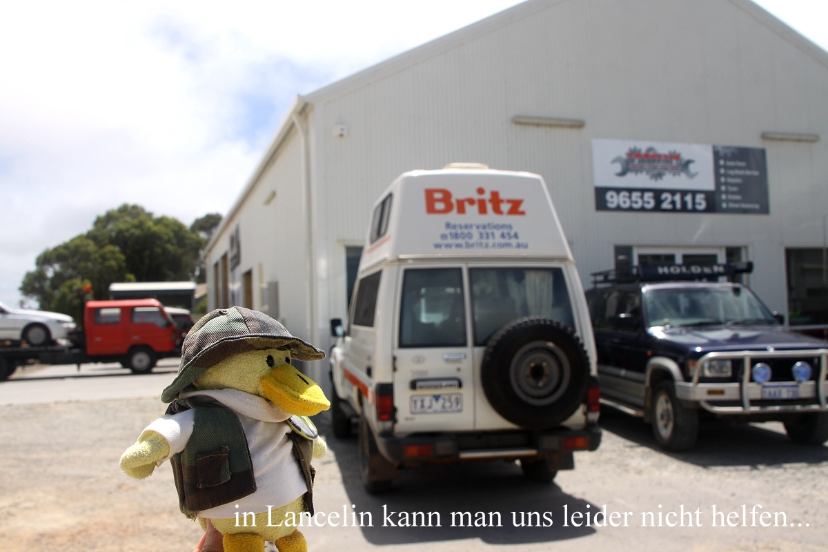 Ich kaufte eine große Kiste (30 Dosen) für 43 $, die direkt aus dem Kühlraum kam. Als wir ein paar hundert Meter gefahren waren, vermisste ich meine Brille. Trotz intensiver Suche in sämtlichen Hosentaschen war sie unauffindbar. Wir fuhren noch mal zum Liquor Store zurück, aber auch dort war sie nicht. Na ja, da kann man halt nichts machen, war allerdings nur eine billige Lesebrille. Bevor wir endgültig losfuhren, schaute ich noch mal in die Betriebsanleitung unseres Autos, um nach der Bedeutung des gelben Warnlichts am Armaturenbrett zu forschen. Was ich las, war nicht erfreulich. Die Bedeutung war nicht klar, doch sollte alsbald eine Toyota-Werkstatt aufgesucht werden. Hmm, wie gehen wir jetzt vor. Gleich am Eingang des Caravanparks stand eine öffentliche Telefonzelle. Da ich kein Mobiltelefon mitgebracht hatte, kratzten wir unsere Münzen zusammen und ich rief erst mal die kostenlose Service-Nummer von BRITZ an. Die verstanden generell, dass ich ein Problem mit dem Auto hatte und verbanden mich mit einer anderen Stelle, die Autoreparaturen vermittelte. Die Verständigung war äußerst mühsam, erstens war der australische Dialekt kaum zu verstehen, zweitens kam erschwerend hinzu, dass die Telefonzelle offen war, und der böige Wind mich kaum ein Wort verstehen ließ. Da das Auto ja noch fahrbereit war, wollte man mir eine Werkstatt in der Nähe heraussuchen und man gab mir eine Nummer, die ich in einer Viertelstunde anrufen solle. Das tat ich dann auch, doch erstens war diese Nummer nicht kostenlos, so dass mir schnell die Münzen ausgingen und zweitens hing ich in einer automatischen Ansage fest mit mehreren Optionen, die ich aber nicht verstand. Ich hängte auf. Bei der Rezeption fragte ich den Besitzer nach einer Toyota-Werkstatt in der Nähe. Er wusste nur 2 Möglichkeiten, entweder nach Geraldton 2 Stunden weiter nördlich oder zurück nach Perth, was 1 ½ Stunden Fahrtzeit bedeutete. Es gebe aber eine allgemeine Reparaturwerkstatt am Ortsausgang, wo man fragen könnte. Ich ging zu Tomoko, die mir am Auto eine freudige Überraschung bereitete. Sie hatte doch tatsächlich meine vermisste Brille im Gras liegend neben dem Parkplatz gefunden. Ich war darüber sehr froh. Nun überlegten wir, wohin wir fahren sollten. Wir entschieden uns nach Perth zurückzufahren. Ich programmierte die Adresse von Toyota in Perth in mein Navigationsgerät und los ging's. Beim Ortsausgang machte ich trotzdem kurz halt bei der Reparaturwerkstatt. Im Augenblick sei man sehr beschäftigt, aber ich könnte zwischen 14 und 15 h mal vorbeischauen. So lange wollten wir nicht warten. |