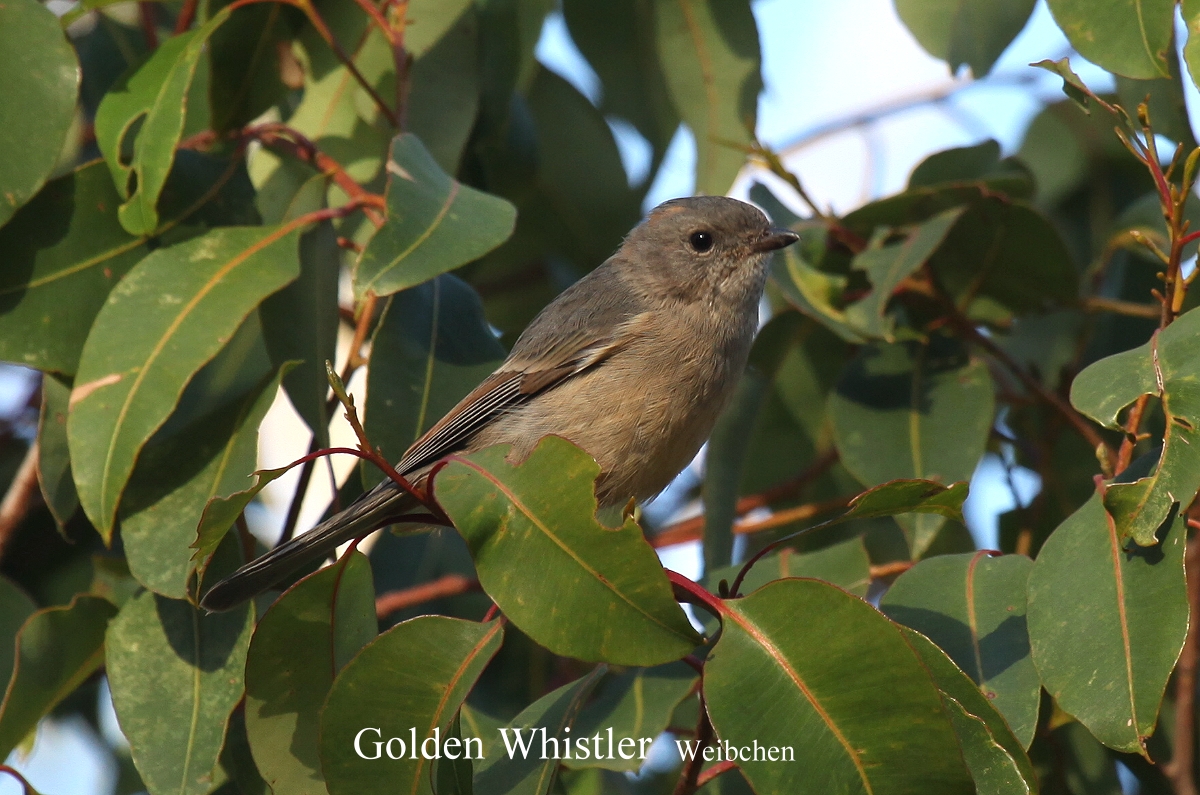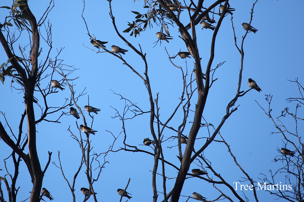 Um 5.30 h wachten wir auf. Da Sonnenaufgang zurzeit gegen 4.40 h ist, war es schon taghell. Daher hielt es uns auch nicht mehr lange im Bett. Überall zwitscherten schon die Vögel. Besonders an der Tränke herrschte Hochbetrieb, zahlreiche Elegant Parrots hatten sich dort versammelt und tranken Wasser. Auch Australian Ringnecks besuchten die Tränke. Tomoko fotografierte einen Vogel, den sie zunächst als Bristlebird einschätzte, der sich aber bei näherem Hinsehen im Buch und Vergleich mit unseren gespeicherten Vogelstimmen als Grey Shrike-Thrush entpuppte. Zahlreiche Schwalben (Tree Martins) hatten sich in einem Baumwipfel versammelt. |