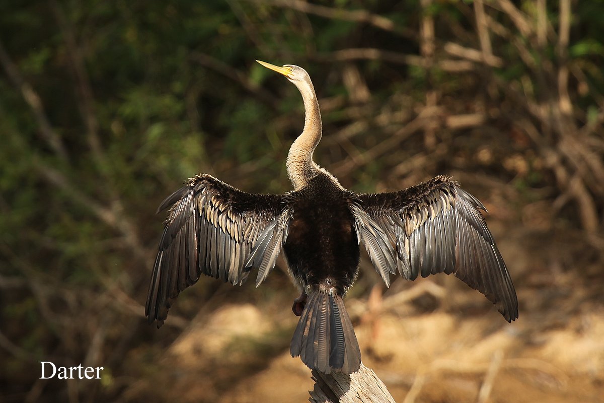 Schon nach kurzer Zeit tauchte das erste Krokodil auf, ein Süßwasserkrokodil. Es lag reglos zwischen den Büschen am Ufer. Bald folgten noch weitere, insgesamt wohl 7 - 8. An einer Stelle lagen gleich 4 zusammen. Da wir sehr langsam fuhren, konnten wir aufmerksam die Ufer beobachten und so die manchmal ziemlich versteckten Tiere entdecken. Zahlreiche Darter konnten wir sehen, die meistens ihre ausgebreiteten Flügel in der Sonne trockneten, ebenso viele Reiher und einen Eisvogel (Forest Kingfisher). |