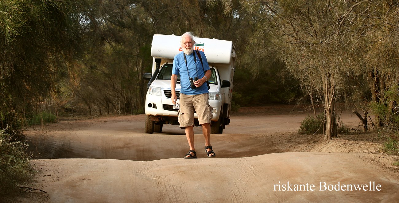 Etliche Vögel konnten wir beobachten. Neben den überall zahlreich vertretenen Galahs waren auch Fairy-wrens, Brown Honeyeaters, Zebra Finchs zu sehen.Leider waren die meisten aber zu weit entfernt für ein gutes Foto. |