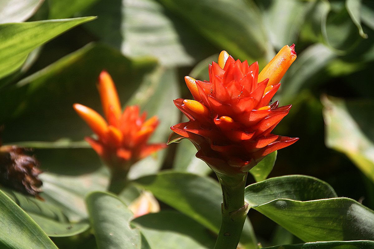 An einen großen Teich mit großen Seerosenblüten und -blättern trafen wir auf zahlreiche Heliconia-Pflanzen, deren Blüten mich immer wieder faszinieren. |