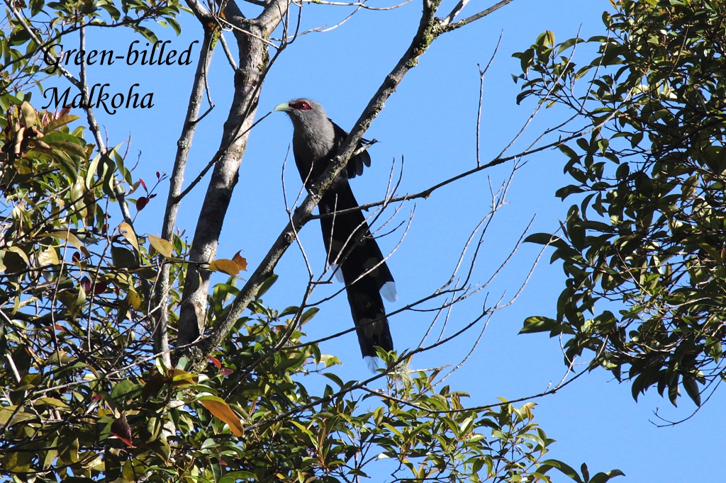 Hoch in einem Baumwipfel entdeckten wir einen Green-billed Malkoha, einen für uns neuen Vogel. Langsam gingen wir die steilen Stufen des Trails hinunter. Dabei konnten wir sehen: Specht (Greater Yellownape), White-throated Fantail, Lesser Raquet-tailed Drongo sowie einige Eichhörnchen. Ganz in der Nähe schallten die lauten Rufe einer Gruppe Gibbons durch den Urwald. Von Ferne antwortete eine weitere Gruppe. Wir versuchten die Rufe nachzuahmen um die Gruppe etwas näher anzulocken, leider ohne Erfolg. In den dichten Baumwipfeln konnten wir nichts erspähen. Da der Bishop-Trail einige anstrengende steile Passagen hat, dachten wir, dass es vielleicht für den ersten Tag besser sei, den deutlich weniger anspruchsvollen Hemmant-Trail zu wandern. Wir gingen also langsam wieder zurück den steilen Berg hinauf. Ein kleiner Rufous-browed Flycatcher suchte nach Futter, ebenso ein Black-and-Crimson Oriole. |
