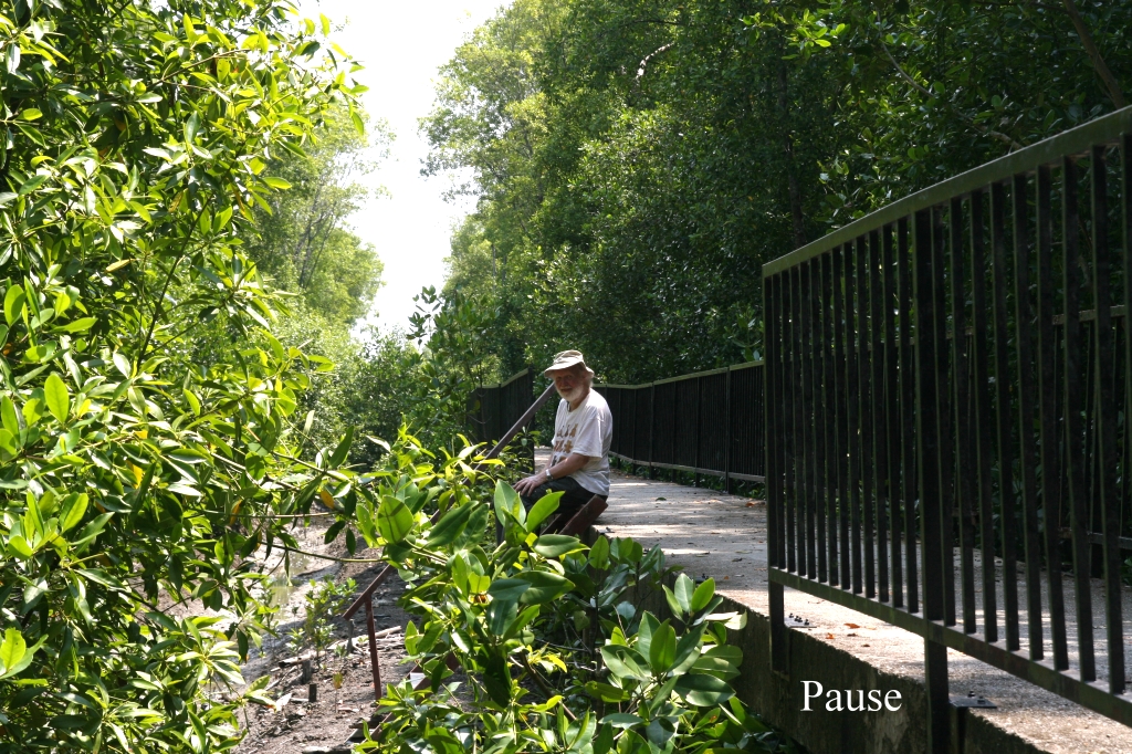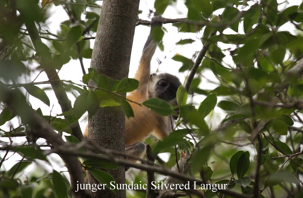 In den Bäumen beim Hotel waren viele Affen ( Sundaic Silvered Languren) zu sehen. Diese sehen sehr nett aus, besonders die orangene Farbe der kleinen ist schön anzusehen. Vor einer Stunde sah es noch nach einem Gewitter aus, doch um 16:00 Uhr war der Himmel wieder ziemlich klar, so dass wir in das nahe gelegene Nature Reserve Center fuhren. Kaum hatten wir einige Schritte in den Mangrovenwald gemacht, fielen die Moskitos wieder in Scharen über Tomoko her. Ich besprühte sie noch mal von allen Seiten mit einem Schutzmittel, doch viel half es leider nicht. Langsam wanderten wir ungefähr 2 Stunden umher und konnten folgendes sehen: Red-eyed Bulbuls, Hill Mynas, Ashy Tailorbirds, Black-necked Oriole, Oriental White-eyes, Asian Paradise Flycatcher (female), Warbler (Arctic ?), White-throated Fantails, Stork-billed Kingfishers, |
