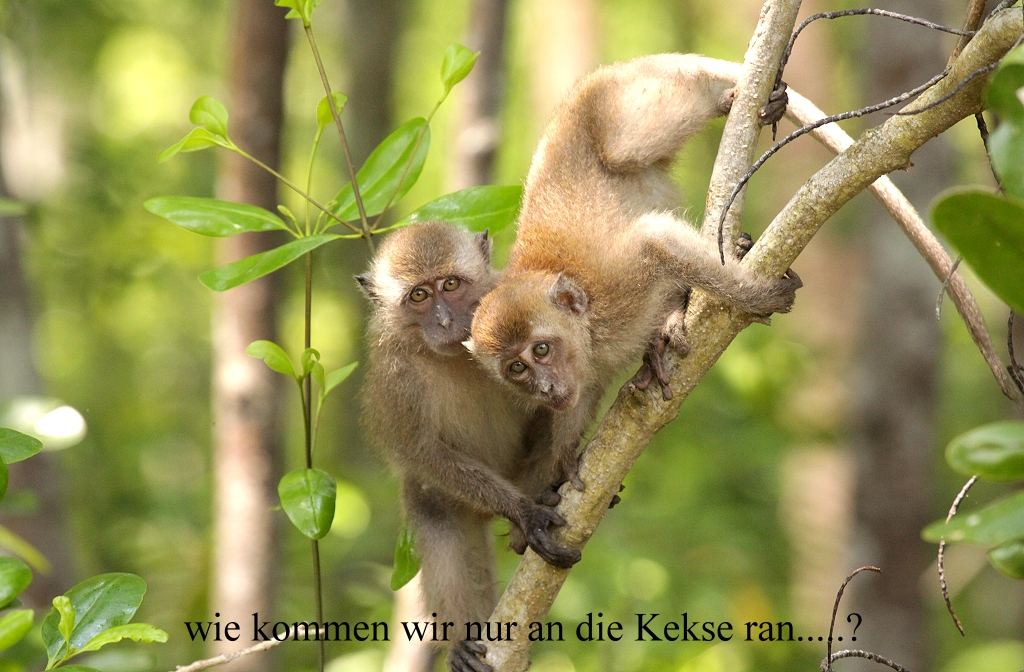 Sie schienen sehr an unseren Keksen interessiert zu sein und bildeten einen großen Halbkreis um uns, blieben jedoch in respektvoller Entfernung. Es schien so, als ob sie eine Strategie entwickelten, wie sie an unsere Kekse kommen könnten. Nach 10 min zogen sie sich jedoch wieder zurück, weil sie anscheinend einsahen, dass bei uns nichts zu holen war. Wir trafen ein Ehepaar, das in der Gegend von Kuala Lumpur wohnt und ebenfalls Vögel beobachtete, speziell die Raubvögel, die jetzt auf ihrem Zug nach Süden dieses Gebiet überflogen. |