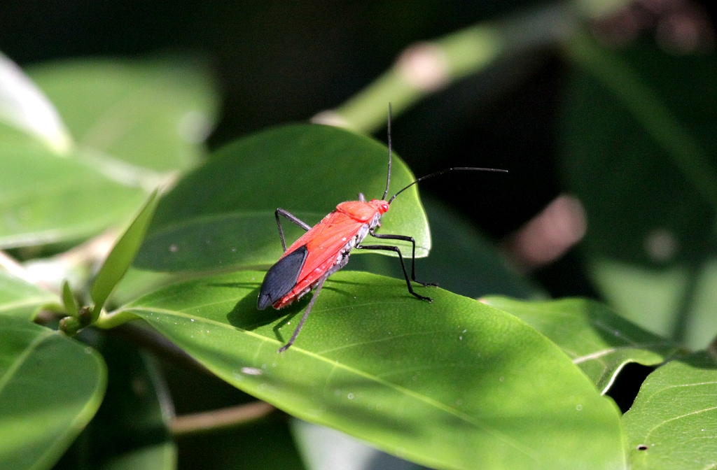Einen männlichen Specht (Laced Woodpecker) konnten wir fotografieren. An der gleichen Stelle wie gestern trafen wir auch wieder auf den jungen Kuckuck (Little Bronze Cuckoo), der von einem kleinen Gerygone gefüttert wurde. Immer wieder sahen wir auch kleine Insekten mit leuchtenden Farben. Gegen 12:30 Uhr erreichten wir wieder eine kleine Schutzhütte. Als wir darin Platz nahmen und ein paar Kekse auspackten, sahen wir plötzlich eine Affenherde aus dem Mangrovenwald kommen. |