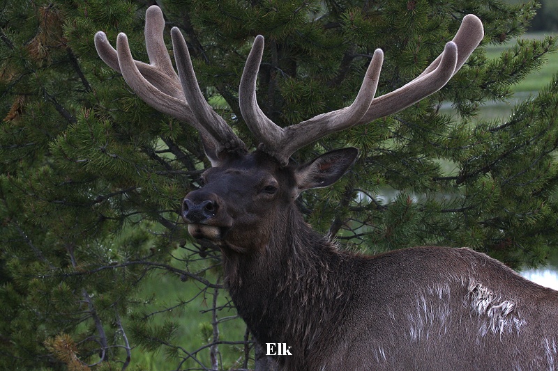 In der Nähe der Jackson Lodge standen mehrere Autos am Straßenrand und die Menschen fotografierten fleißig Richtung Straßenböschung. Dort inmitten von dichten Büschen graste ein junger männlicher Elch. Man konnte kaum etwas sehen in dem dichten Gebüsch. Erst als ein Mann auf seinen Fingern pfiff, kam der Elch neugierig aus dem Dickicht und spitzte seine Ohren. |