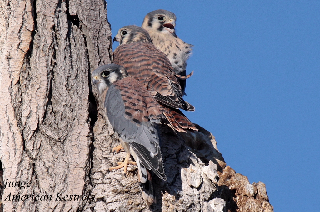 Langsam gingen wir den "Oasis of Mara Trail" entlang bis zur ersten Palmengruppe, wo 4 Falken (American Kestrel), 3 Junge und ein Weibchen, sich aufhielten. |