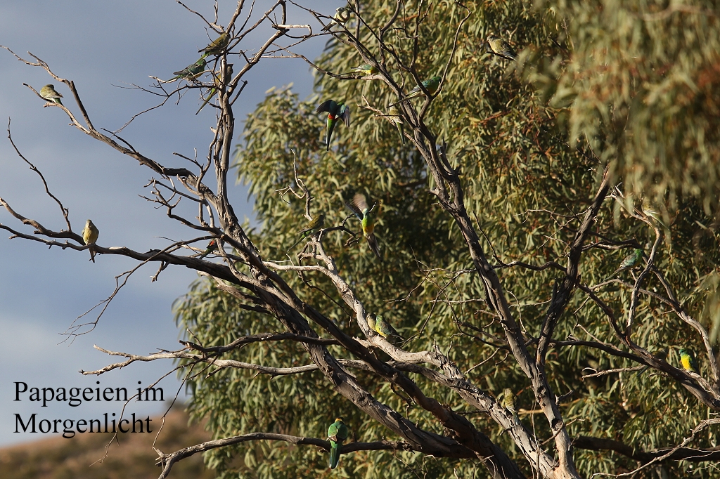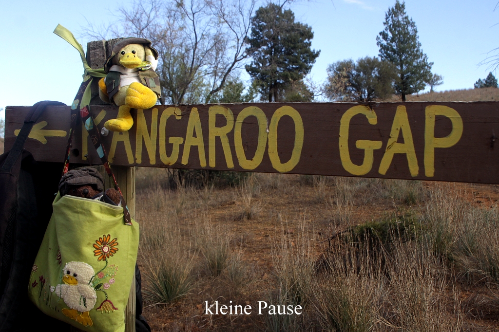 Kurze Zeit später kreisten zwei Adler (Wedge-tailed Eagle) in der Luft. Dann nochmals rund zehn Emus und noch zwei Adler. Mehr Adler und Emus folgten noch im weiteren Verlauf der Strecke. An einer Stelle haben wir das Geheimnis der am Straßenrand liegenden Kürbisse gelüftet. Dies beschäftigte uns schon seit ein paar Tagen. Mehrfach hatten wir neben der Straße kleine Kürbisse liegen sehen und wir fragten uns, ob wohl irgendjemand diese weggeworfen hatte. Doch es handelt sich ganz einfach um eine wilde Kürbisart.