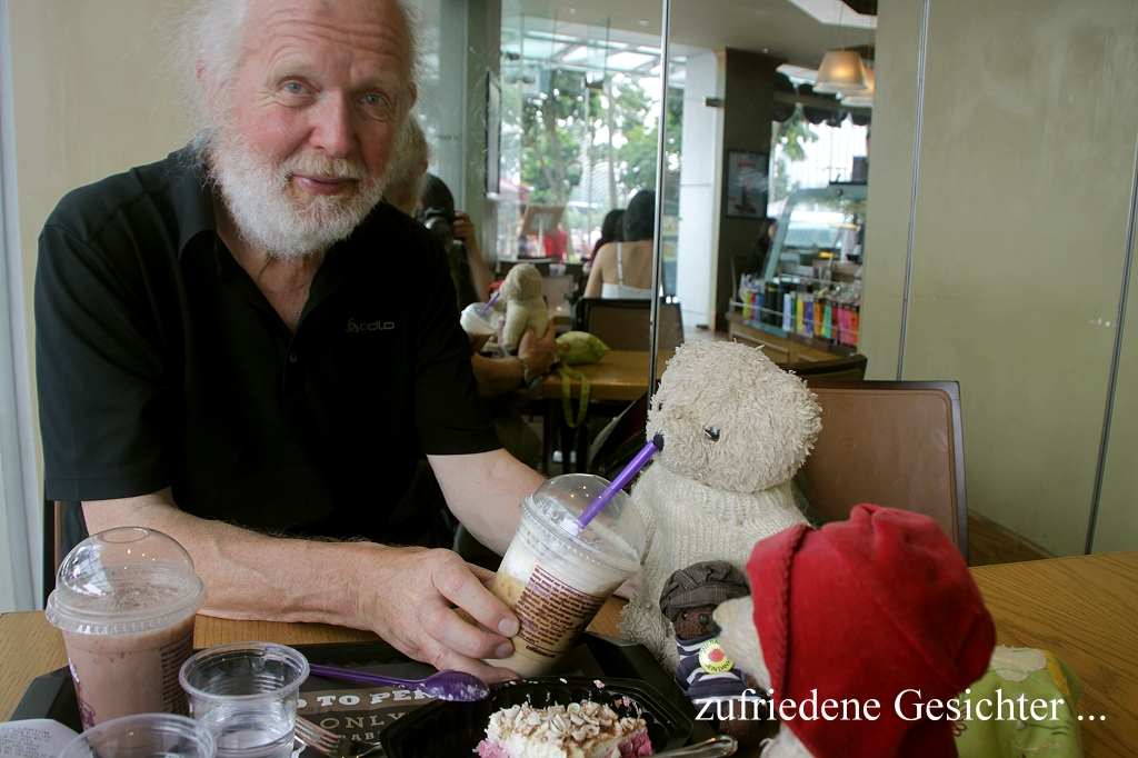 Tomoko erwachte schon sehr früh um 5.30 Uhr und fühlte sich wohl. Das Fieberthermometer zeigte nur 35,4°, also offensichtlich kerngesund. Da es draußen noch dunkel war, blieben wir noch eine Weile liegen. Zum Frühstück gingen wir wieder an den gleichen Imbissstand, wie schon die Tage zuvor. Als wir gegen 7.45 Uhr dort eintrafen, war erst ein einziger Gast da, na ja, es war halt Sonntagmorgen und die Shopping Malls waren noch geschlossen um diese Zeit. |