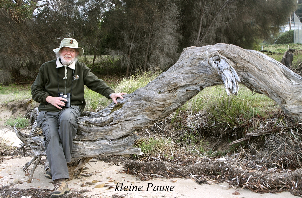 Julien zeigte uns einen Glossy Black-Cockatoo, dessen Stimme wir uns merkten. Die Sonne schien und es wurde deutlich wärmer, so dass ich meine warme Fleece-Jacke auszog. |