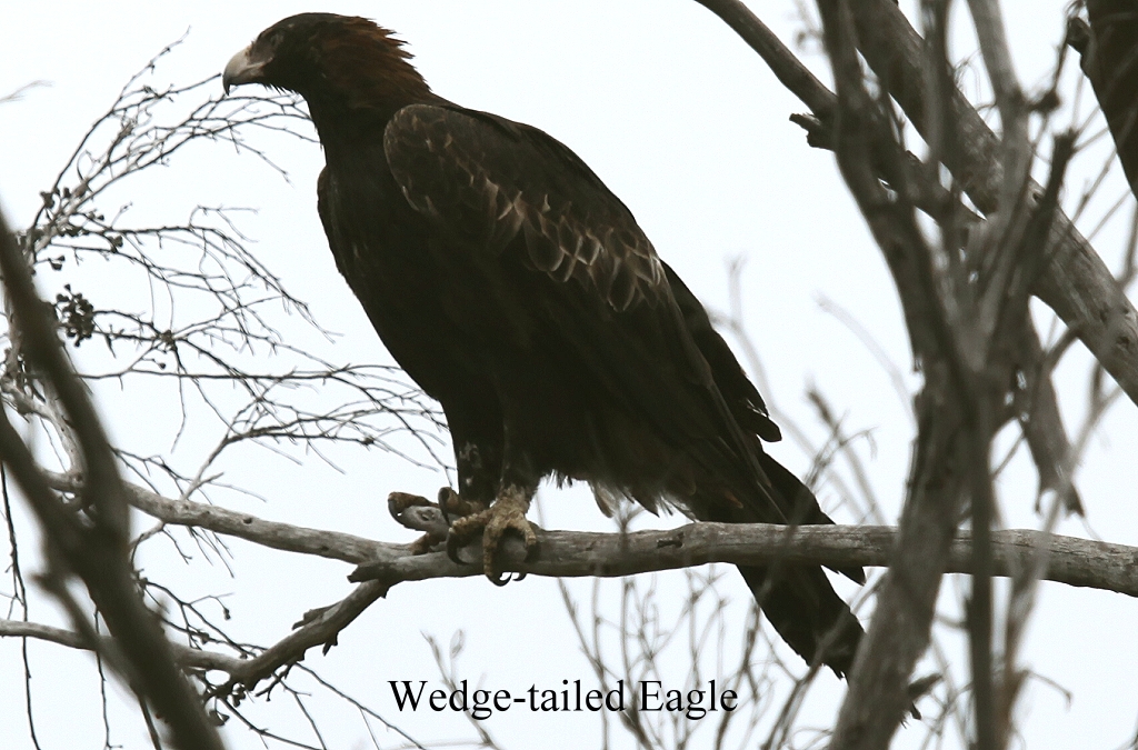 Ich ging in die Rezeption und verlängerte unseren Aufenthalt um drei weitere Nächte. Dieser Campingplatz ist wirklich toll. Nachdem wir uns reisefertig gemacht hatten, fuhren wir gegen 9:10 Uhr los in Richtung Cape Borda, das in der äußersten Nordwestecke der Insel liegt. Die ersten 30 km der Straße sind asphaltiert. Nach 10 min sahen wir einen Adler (Wedge-tailed Eagle), kurze Zeit später noch einen zweiten, leider etwas zu weit entfernt für ein gutes Foto. Wir fuhren nur maximal 60-70 km/h um keine Tiere zu überfahren. Nach einer halben Stunde erreichten wir die Abzweigung nach Cape Borda. Ab hier war die Straße unbefestigt, wie geschaffen für unser Allrad-Auto. Fünf Masked Lapwings waren zu sehen, flüchteten aber schnell als wir uns näherten. Außerdem sahen wir noch einen Brush Bronzewing, eine Taubenart.