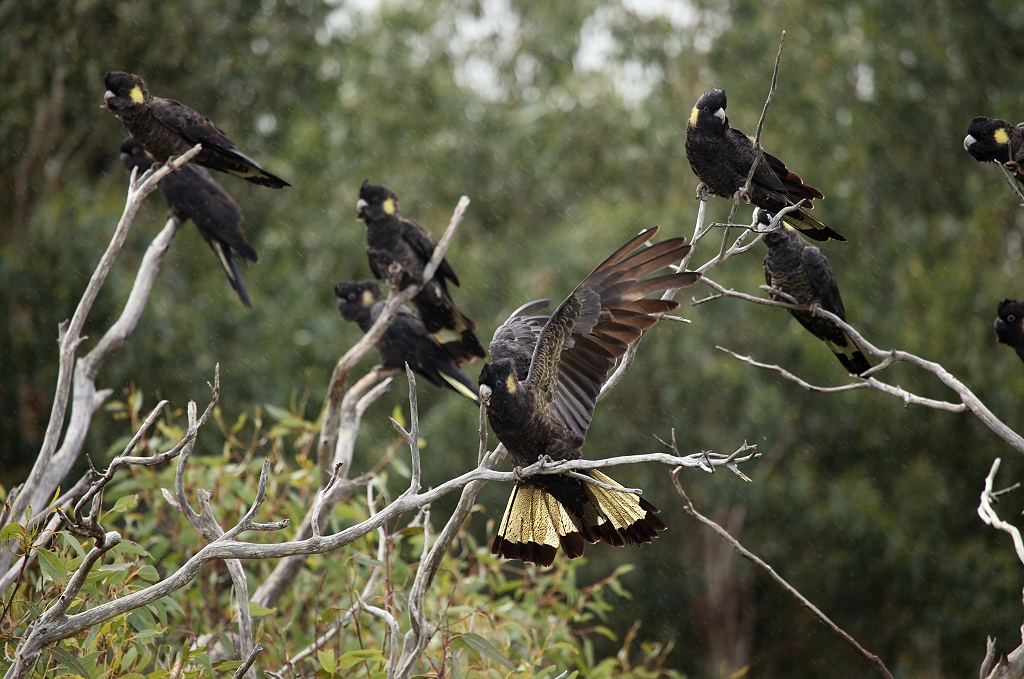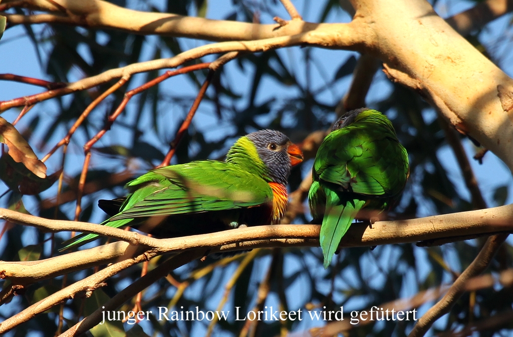 Insgesamt sahen wir wieder 5 Papageienarten (Crimson Rosella (race fleurieuensis), Sulphur Crested Cockatoo, Rainbow Lorikeet, Galah und Yellow-tailed Black-Cockatoo). Die weißen Sulphur-crested Cockatoos mit ihren gelben Häubchen kreischten besonders markant und übertönten alle anderen Geräusche. |