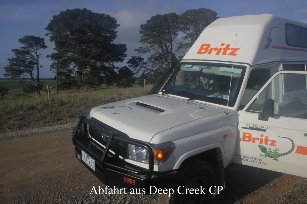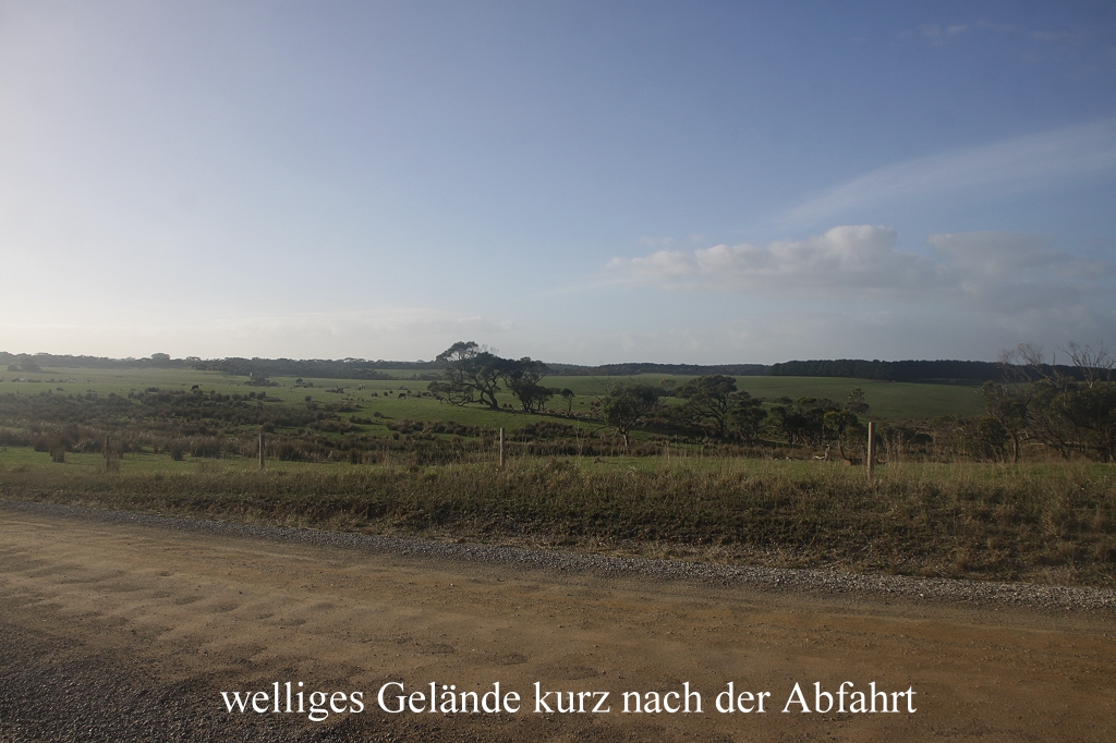 Hauptsächlich aber waren es Schafe, die immer wieder rechts und links von der Straße in den großflächigen Wiesen grasten. Um 9.30 Uhr fanden wir in Aldinga eine Tankstelle, die einigermaßen vernünftige Preise hatte. Wir tankten beide Tanks voll (insgesamt 112 Liter Diesel à AUS$ 1,52, insgesamt AUS$ 170,60). Somit brauchte unser Auto auf 100 km 11,62 Liter, was ja gar nicht so übel war für eine 8-Zylinder-Maschine. Um 10.00 Uhr
