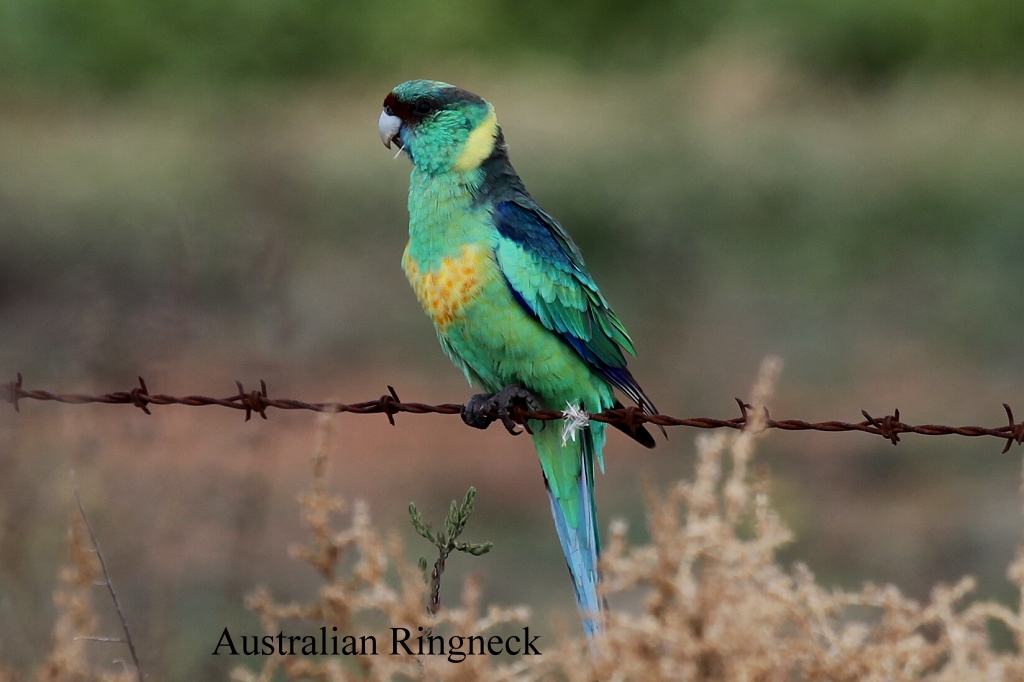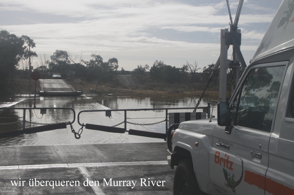 Den Fluss überquerten wir um 9.00 Uhr mittels einer kleinen Autofähre, die kostenlos war. Gleich dahinter erstreckte sich eine interessante Flussuferlandschaft. Ein Kookaburra begrüßte uns. 10 Minuten weiter entdeckte Tomoko wieder Papageien, die gleichen wie schon vorher am Campingplatz, ein Pärchen Yellow Rosella. Etwas weiter eine weitere Papageienart, 2 wunderschöne Australian Ringnecks.