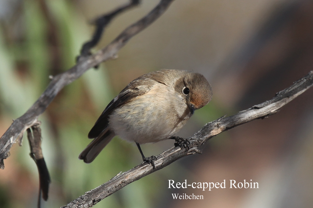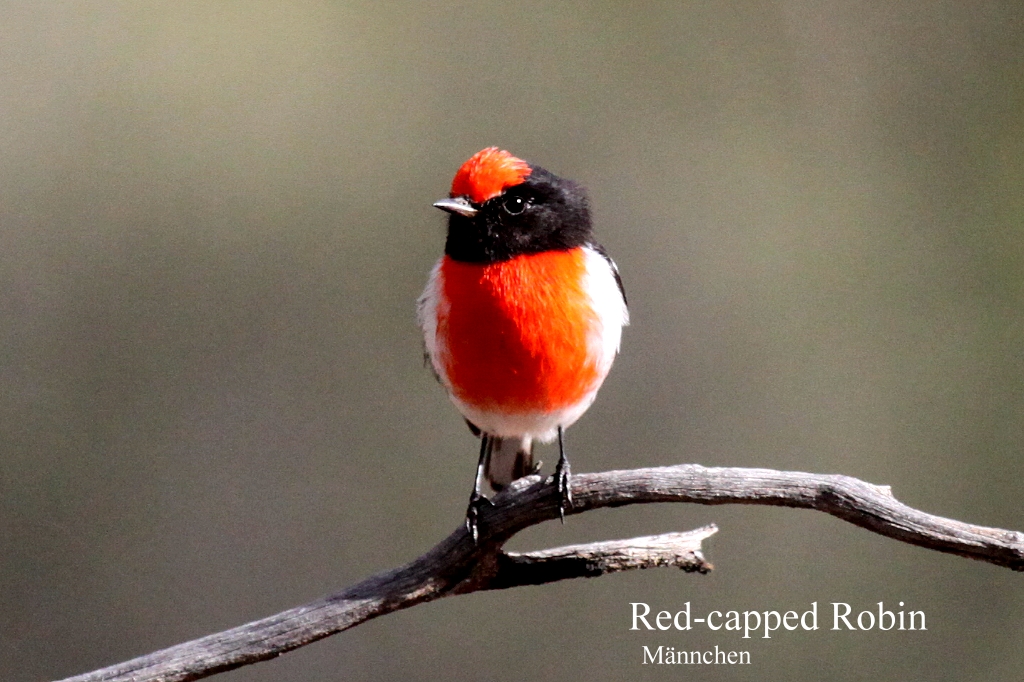 Wir stellten unser Auto ab und machten lediglich ein paar Schritte in die nähere Umgebung. Tomoko gelangen wieder etliche schöne Vogelfotos, die wir anschließend an Hand unseres Vogelbuches identifizierten. Unter anderem waren das: White-browed Treecreeper, Striated Pardalote, Chestnut-rumped Thornbill, Yellow-rumped Thornbill, Spiny-cheeked Honeyeater, White-eared Honeyeater, Yellow-plumed Honeyeater, Red-capped robin, Hooded Robin, Southern Scrub-robin.