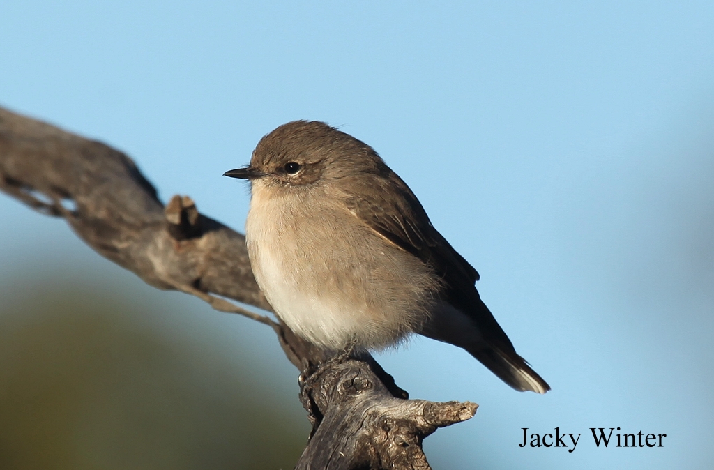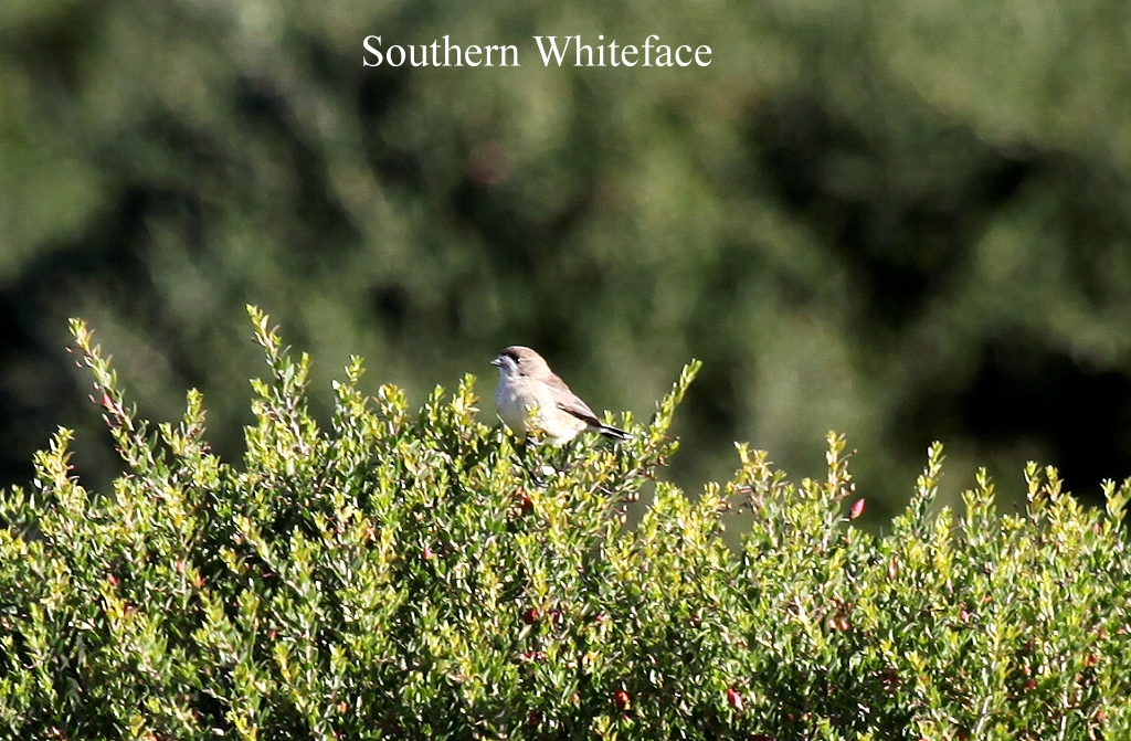 Am Hide selbst war es ganz still, nichts zu sehen, so dass wir nach 10 Minuten wieder wegfuhren und zwar nach Süden etwa 12 km zum Long Dam, den wir gegen 14.00 Uhr erreichten. Hier ließen wir das Auto stehen und gingen langsam etwa 500 m zu Fuß. Inzwischen war der Himmel wieder wolkenlos, nur der Wind war immer noch stark. Da mein Bart mich leider nicht genügend vor dem kalten Wind schützte, gab mir Tomoko ihren zweiten Schal. Wir sahen und hörten etliche Spiny-cheeked Honeyeater und in einiger Entfernung einen kleinen Southern Whiteface. Eine Gruppe Ziegen kam auf uns zu, lief aber schnell wieder zur Seite weg. Auf dem Rückweg gegen die schon recht tiefstehende Sonne tauchte auf dem Weg eine Gruppe Splendid Fairy-wren auf. Zu unserer großen Freude war auch ein Männchen im leuchted blauen Prachtkleid darunter.