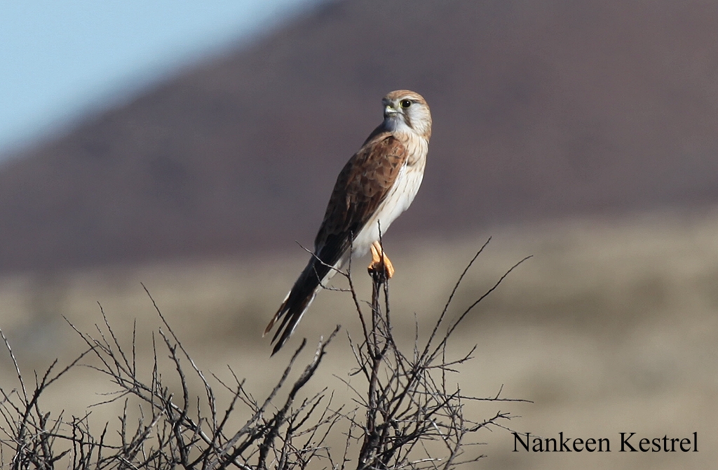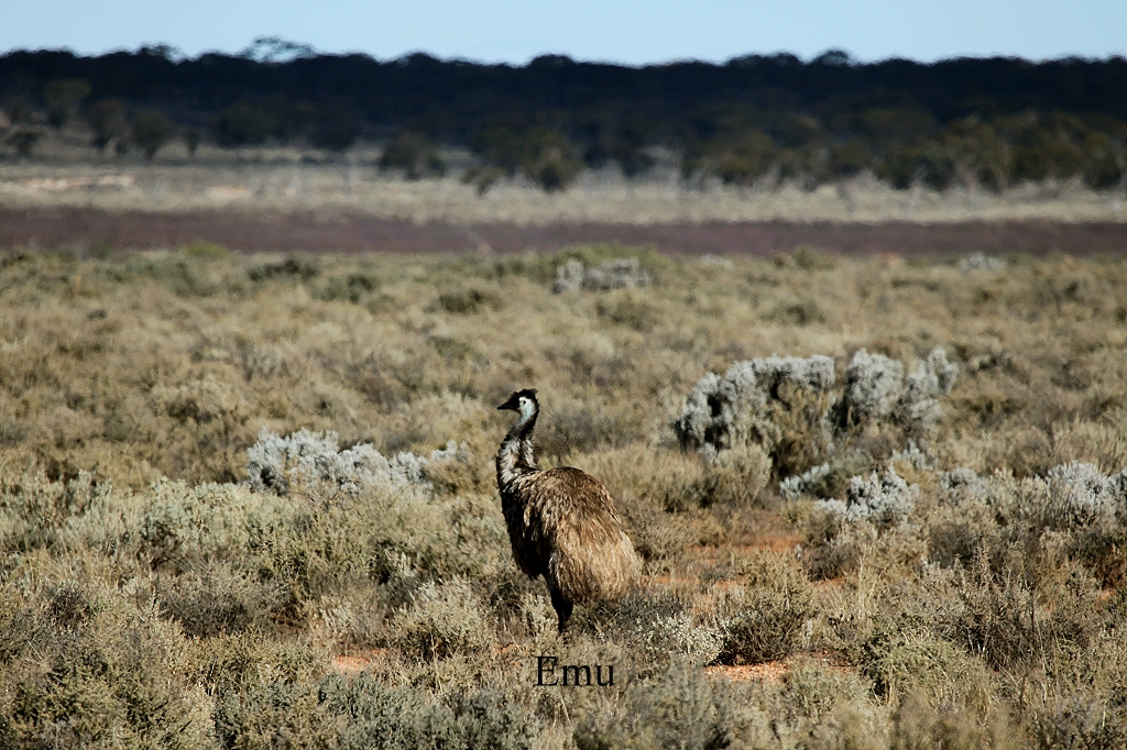 45 km vor Hawker zeigte sich ein Emu direkt am Straßenrand, aber als wir wendeten um ein Foto zu machen war er schon wieder dabei wegzurennen. Ein kurzes Stück weiter kreisten 3 Adler (Wedge-tailed Eagle) über unseren Köpfen und schraubten sich mehr und mehr in die Höhe, bis sie nur noch als kleine dunkle Punkte am Himmel zu erkennen waren. Einige km weiter saß ein Falke (Nankeen Kestrel) auf einem kleinen Strauch neben der Straße, der ruhig sitzen blieb, als ich zurücksetzte, so dass Tomoko endlich einige brauchbare Fotos machen konnte. Hin und wieder tauchte mal ein Känguru (Western Grey Kangaroo) auf, die meistens jedoch ziemlich scheu davonsprangen. |