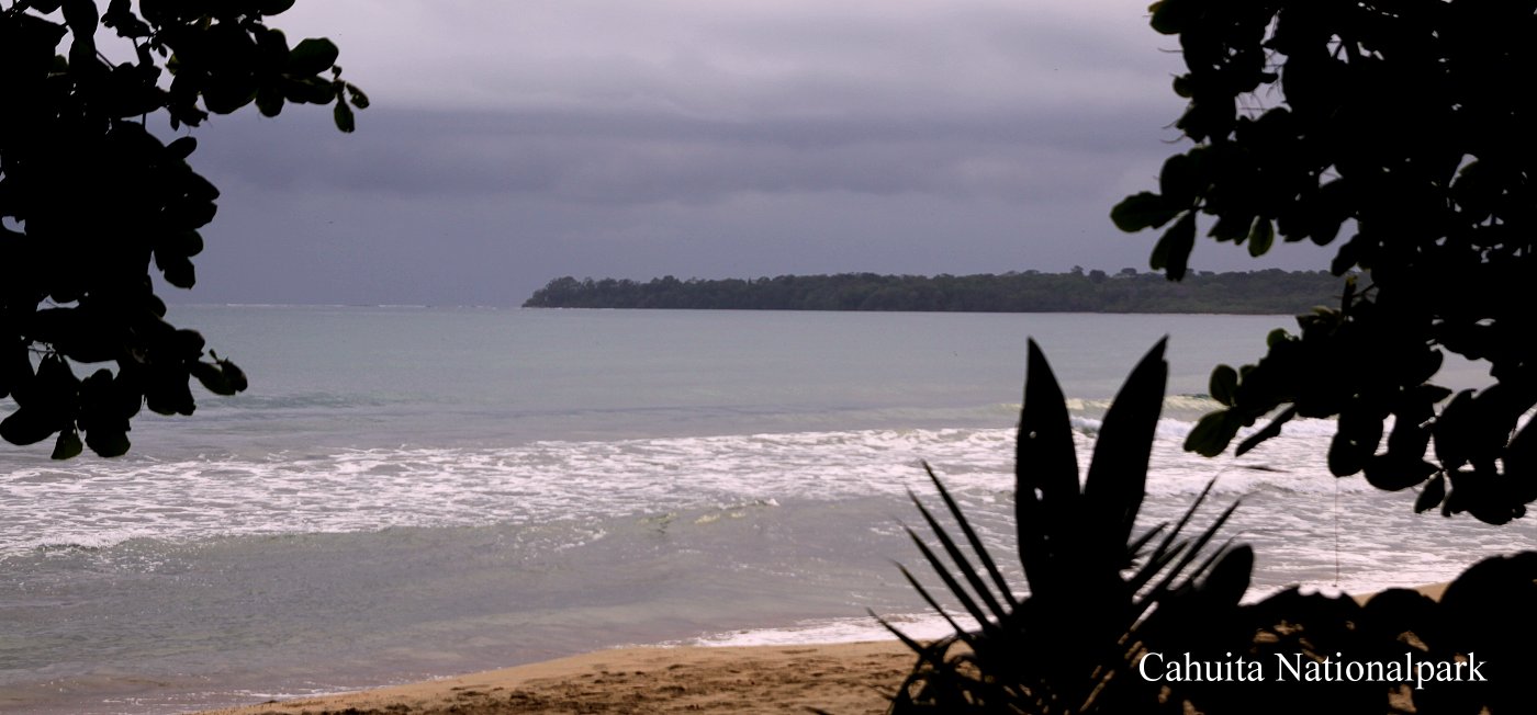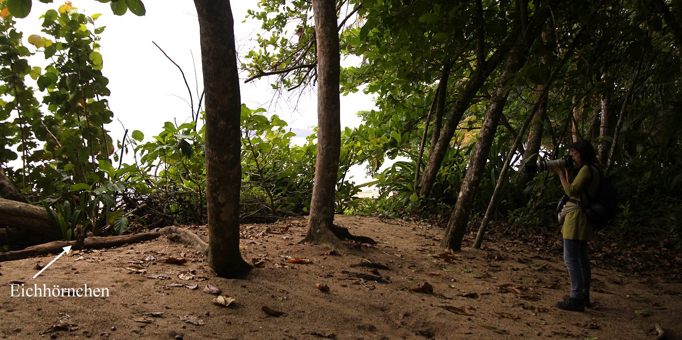 Wir fuhren zurück nach Cahuita zum anderen Parkeingang. Auf dem Wg dorthin entdeckte Tomoko einige grüne Amazonen in einiger Entfernung hoch in den Baumwipfeln, für Fotos leider zu weit. Am Parkeingang machten wir eine freiwillige Spende von 20,- $ und begaben uns auf den gleichen Trail wie gestern. |