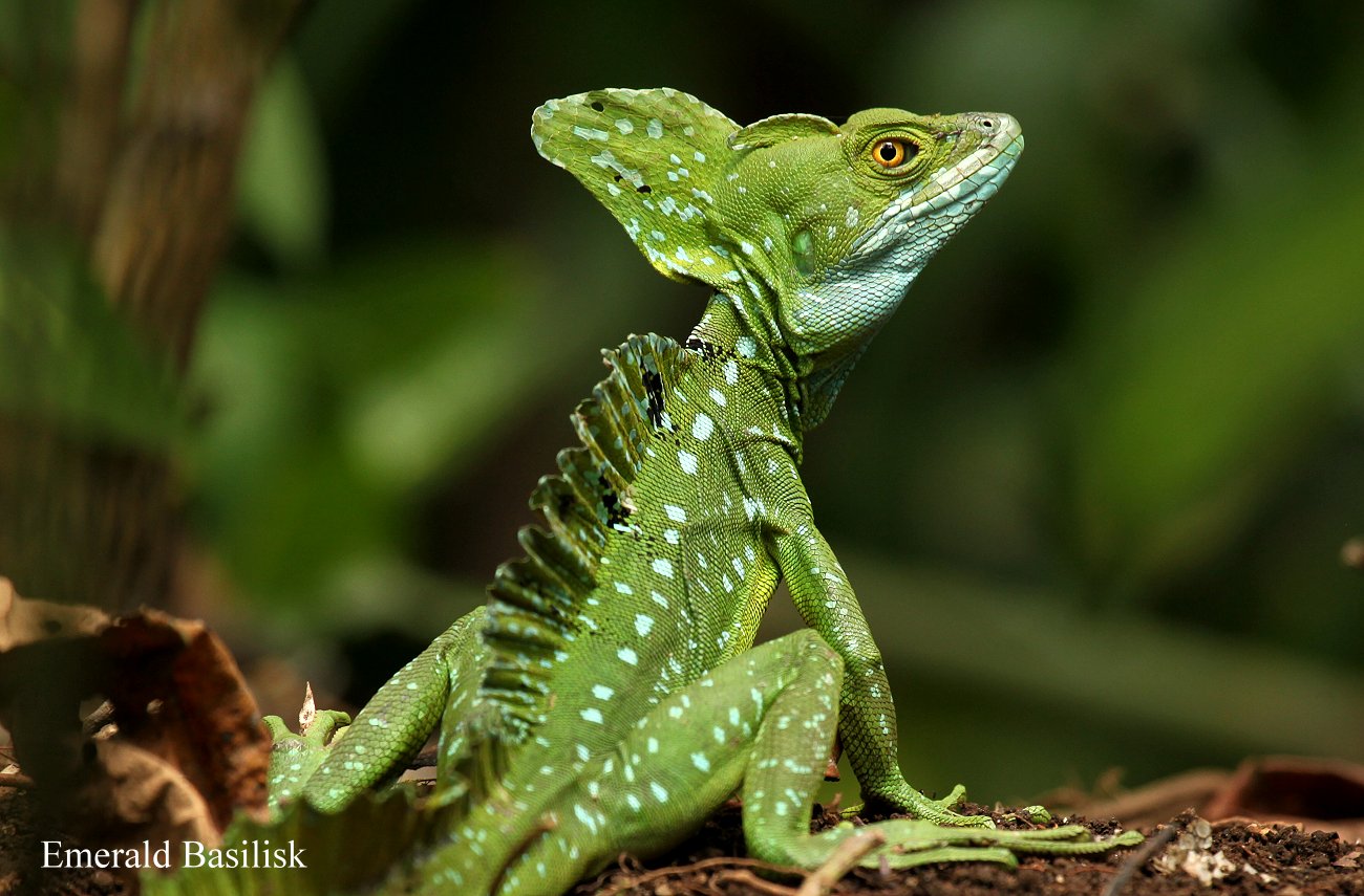 Tomoko konnte es gar nicht erwarten, nahm ihre Kamera und machte eine erste Runde in die nähere Umgebung. Ich war ziemlich verschwitzt, deshalb ging ich zunächst mal unter die Dusche, dann folgte ich auch. Als ich nach einer Viertelstunde zurück kam, saß Tomoko schon auf der Veranda und zeigte mir einige tolle Fotos von einem Emerald Basilisk. |