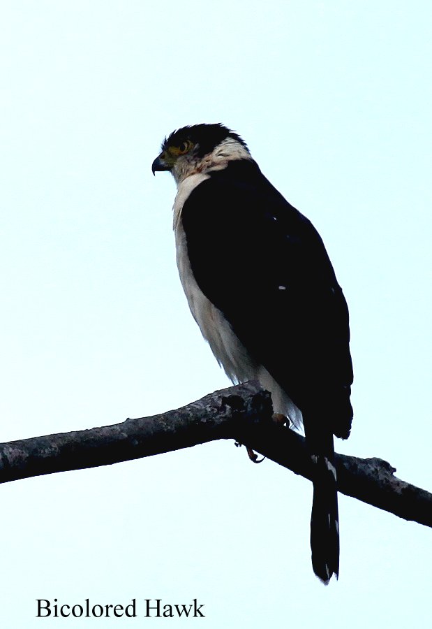 Gegen 4:00 h beim ersten Hahnenschrei wurde ich wach. Draußen war es noch dunkel, somit blieb ich einfach liegen bis die Dämmerung gegen 5:00 h einsetzte. Einige Brüllaffen hörte man aus weiter Entfernung sowie zahlreiche Vogelstimmen. Das Wetter war gut, über uns klarer Himmel, an dem die letzten Sterne gerade verblassten. Die gegenüberliegenden Berggipfel waren in Wolken gehüllt. Bis zum Frühstück um 7:00 h machten wir eine kleine Wanderung in die nähere Umgebung. Gleich am Eingang zur Lodge landete ein Falke hoch auf einem Baum. Ein Blue-gray Tanager suchte in den Zweigen der Büsche emsig nach Futter. |