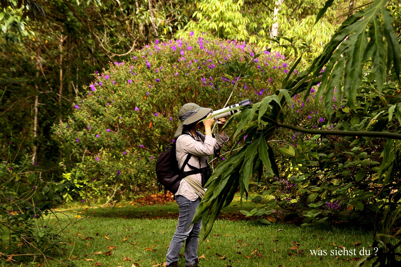 Alles in allem gefällt es uns super hier. José bot uns an heute Nachmittag mit uns zu einem Wasserfall zu fahren, mal sehen ob das Wetter mitspielt. Nachdem Frühstück wanderten wir wieder etwas in der näheren Umgebung umher. Überall zwitschert es, so dass man nicht weiß, in welche Richtung man sich zuerst bewegen soll. |