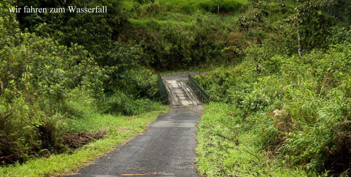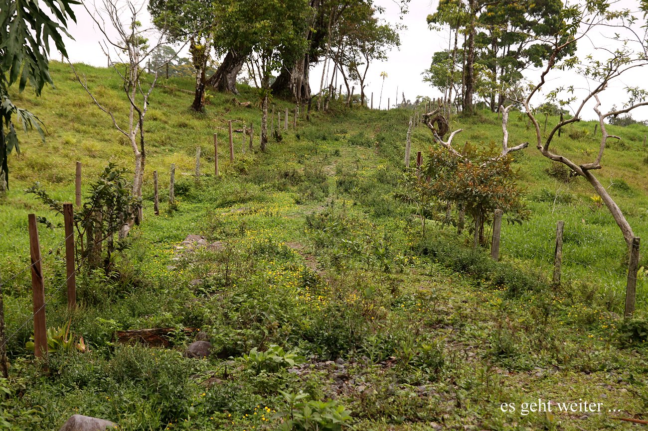 Bis dahin war die Straße gut, hinter Pital unbefestigt mit zahlreichen recht tiefen Schlaglöchern. Dabei musste ich sehr aufpassen, nicht zu schnell in diese Löcher zu fahren. Es ging durch endlose Ananas-Plantagen. Immer wieder tauchten langsame Lastwagen vor uns auf, die eine lange Staubfahne hinter sich her zogen. So schleppten sich die km ziemlich mühsam dahin. |