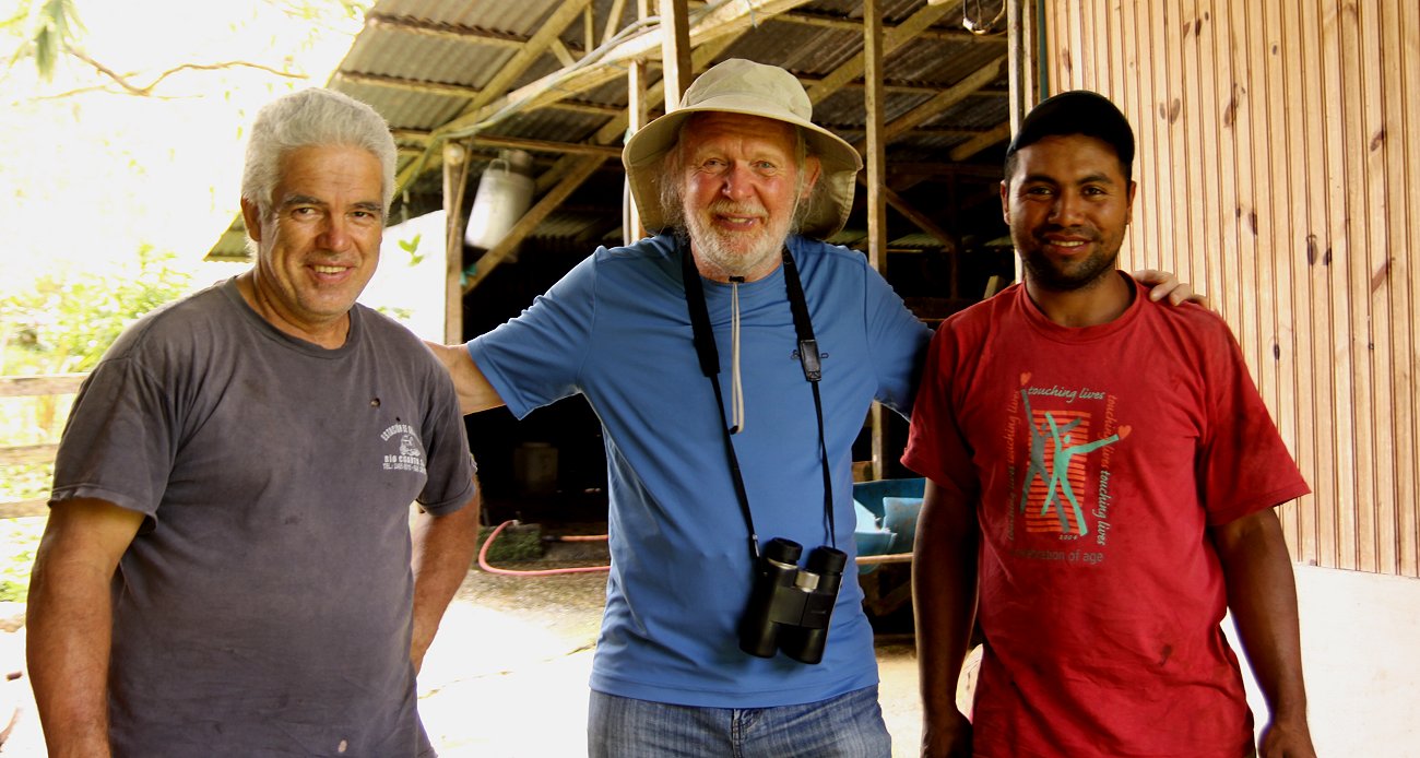 Um 3:50 h hörte ich den ersten Hahn krähen. Ich schlief aber noch mal ein. Beide wurden wir um 5:10 h wach. Aus der Ferne hörten wir einige Brüllaffen rufen, auch etliche Vögel zwitscherten schon. Also standen wir auf und machten gegen 5:30 h einen ersten Spaziergang. Der Himmel war bewölkt, doch es war trocken. Die Temperatur betrug 20° bei 94% Luftfeuchtigkeit, recht angenehm. Auf dem kleinen Weg vor der Lodge sahen wir José schon bei der Arbeit, Ziegen und Kühe versorgen. Auch zahlreiche Vögel konnten wir wieder sehen. |