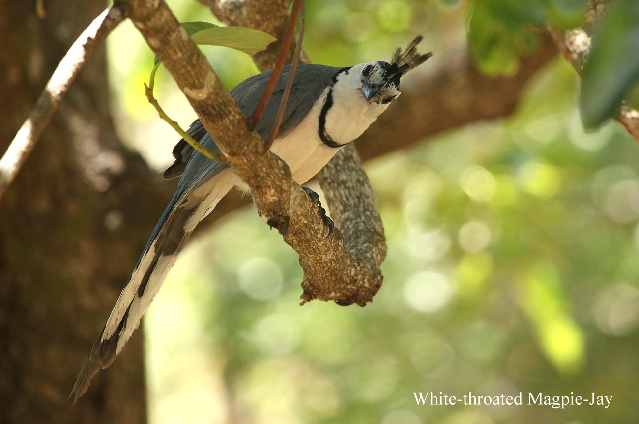 Jetzt noch ein kurzes Stück und wir erreichten den Eingang „Las Pallas". Der Vulkan lag in schönstem Licht vor uns. Ein heftiger heißer Wind wehte. Als wir am Eingang den Ranger nach Vögeln fragten, meinte dieser, dass die Zeit jetzt kurz vor Mittag nicht günstig für Vogelbeobachtung sei. Also sparten wir uns die 10,- US$ Eintrittsgeld für jeden und schauten uns im Eingangsbereich etwas um. Ein wunderschöner White-throated Magpie-Jay kam ganz nah heran geflogen und blieb auf einem Baum eine Weile sitzen bevor er hinunter ins Gras flog. |