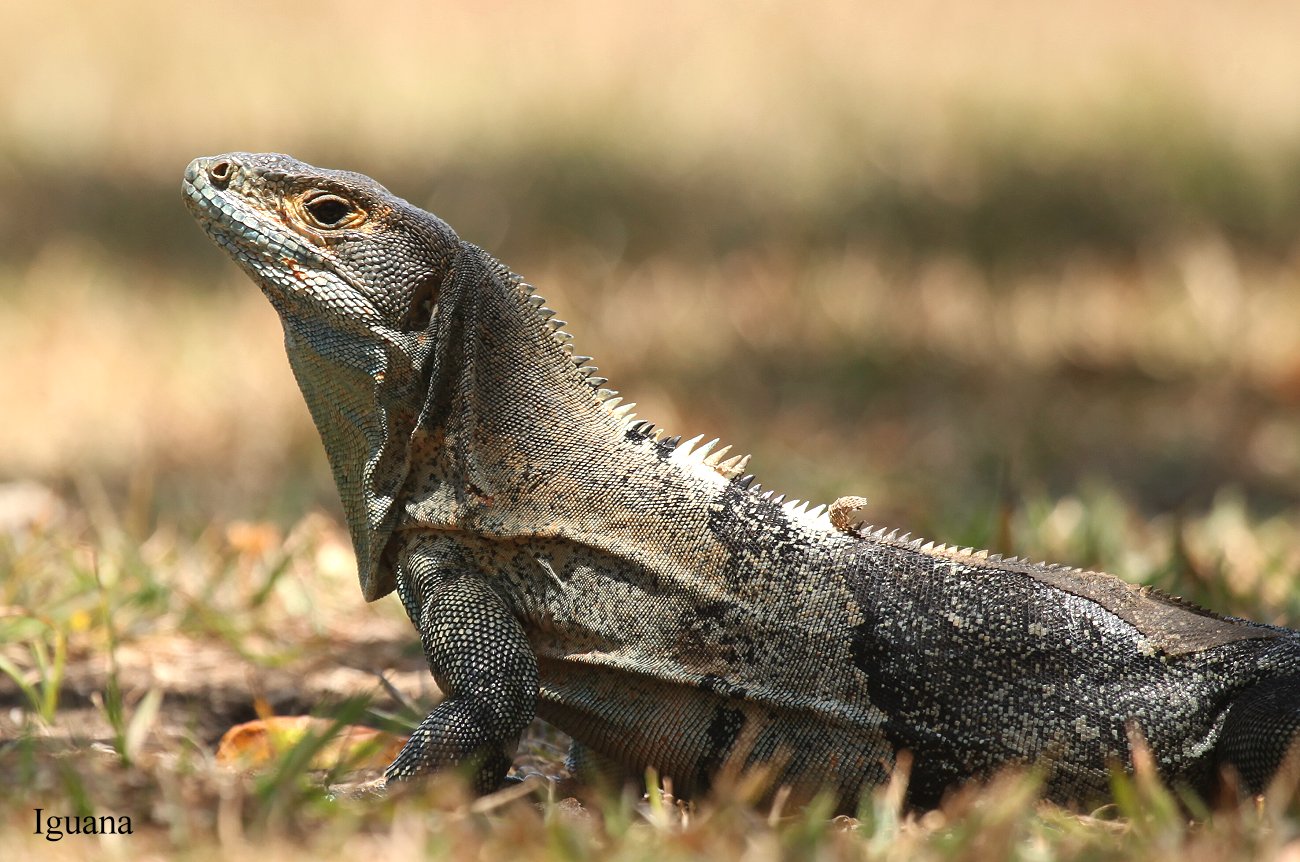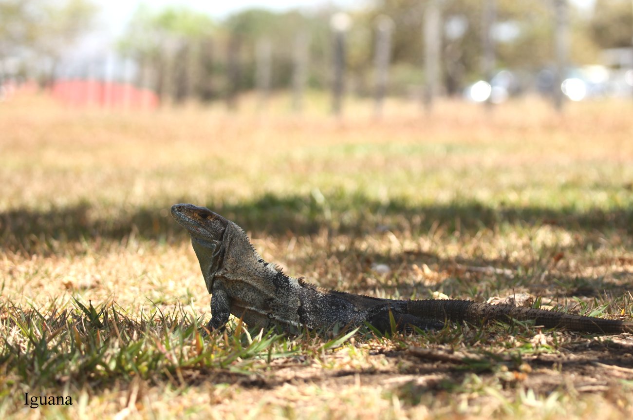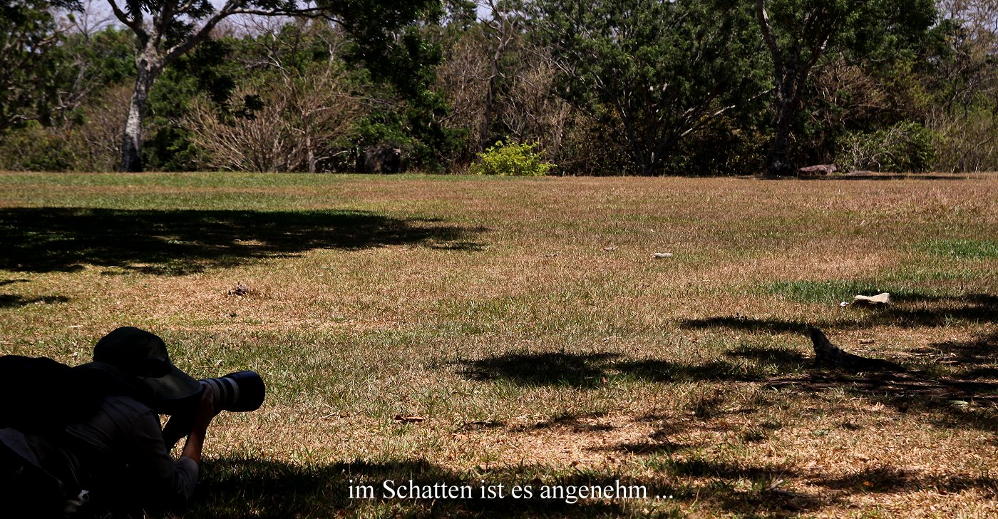 Zwei Iguanas krochen ebenfalls durchs trockene welke Gras auf der Suche nach Essbarem. Tomoko legte sich flach auf den Rasen und machte einige Fotos, dabei blieb sowohl der Iguana als auch Tomoko im Schatten. Ich setzte mich derweil unter einen Baum auf eine Bank ebenfalls in den Schatten. |