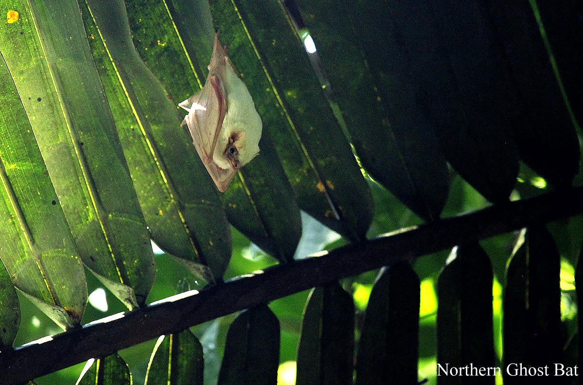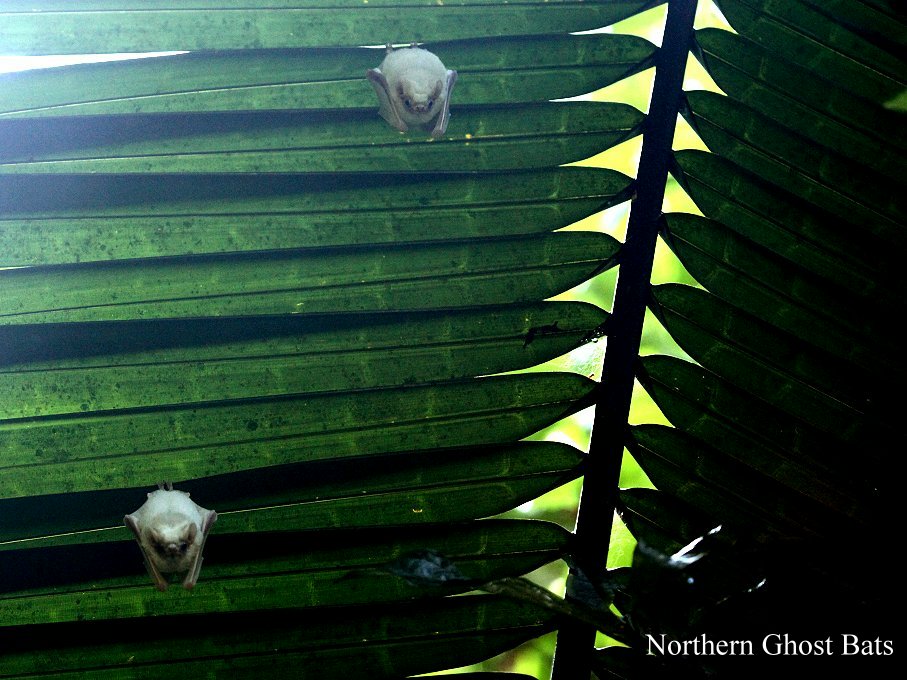 Auch bei den Fledermäusen (Northern Ghost Bat), die immer noch in den gleichen Palmenblättern saßen, machten wir noch ein paar Fotos. |