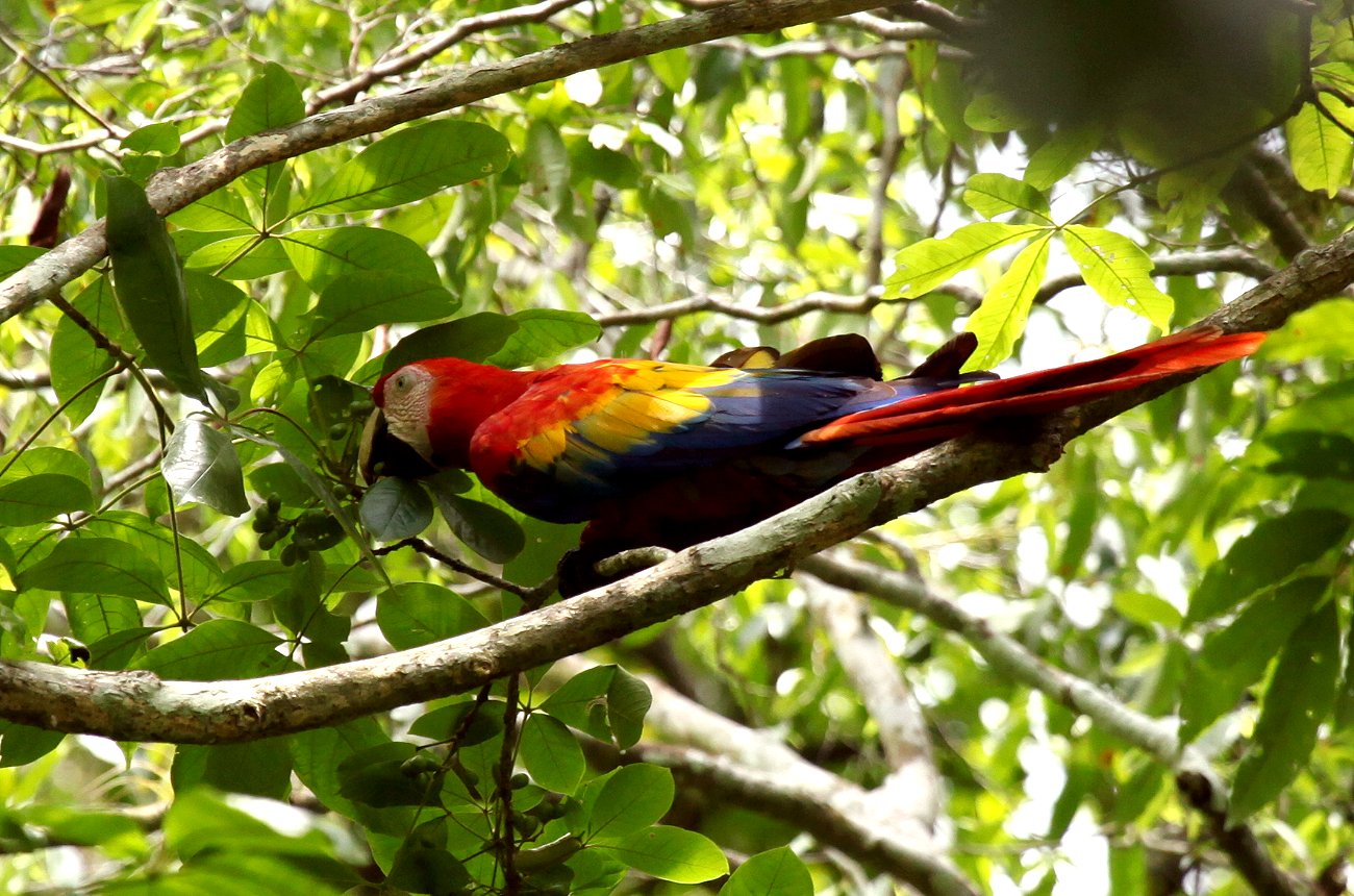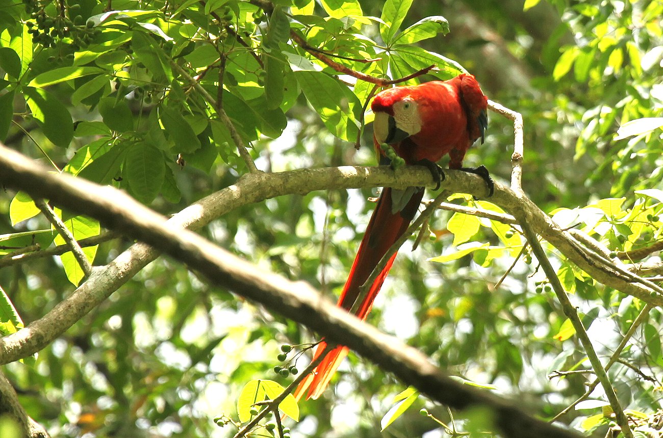Auf dem Rückweg konnten wir nochmals einige rote Aras (Scarlet Macaws) sehen und diesmal in besserem Licht fotografieren. |