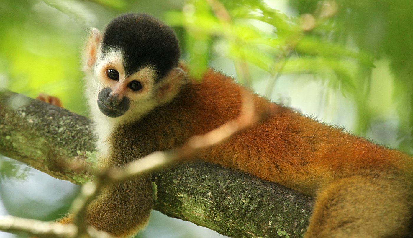 Etliche kleine Äffchen turnten in einem Baum herum, eine besonders hübsche Art, die wir bisher noch nicht gesehen hatten. Es waren Red-backed Squirrel Monkeys. |