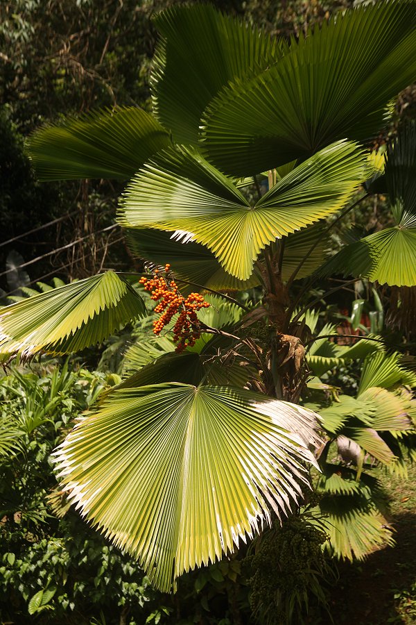 Ein Tukan rief aus der Ferne, sehen konnten wir ihn aber nicht. Ich machte eine kleine runde über das Gelände. An einer Stelle entdeckte ich eine winzige Fledermaus. Ein Huhn mit zahlreichen jungen Küken versteckte sich eilig vor mir. Etwas unterhalb verfügt die Lodge über einen kleinen Swimmingpool, der einen sehr sauberen Eindruck machte, leider aber nur wenig Wasser enthielt. Einige Bäume trugen interessante unbekannte rote Früchte, die wie überdimensionale Bohnen aussahen. |