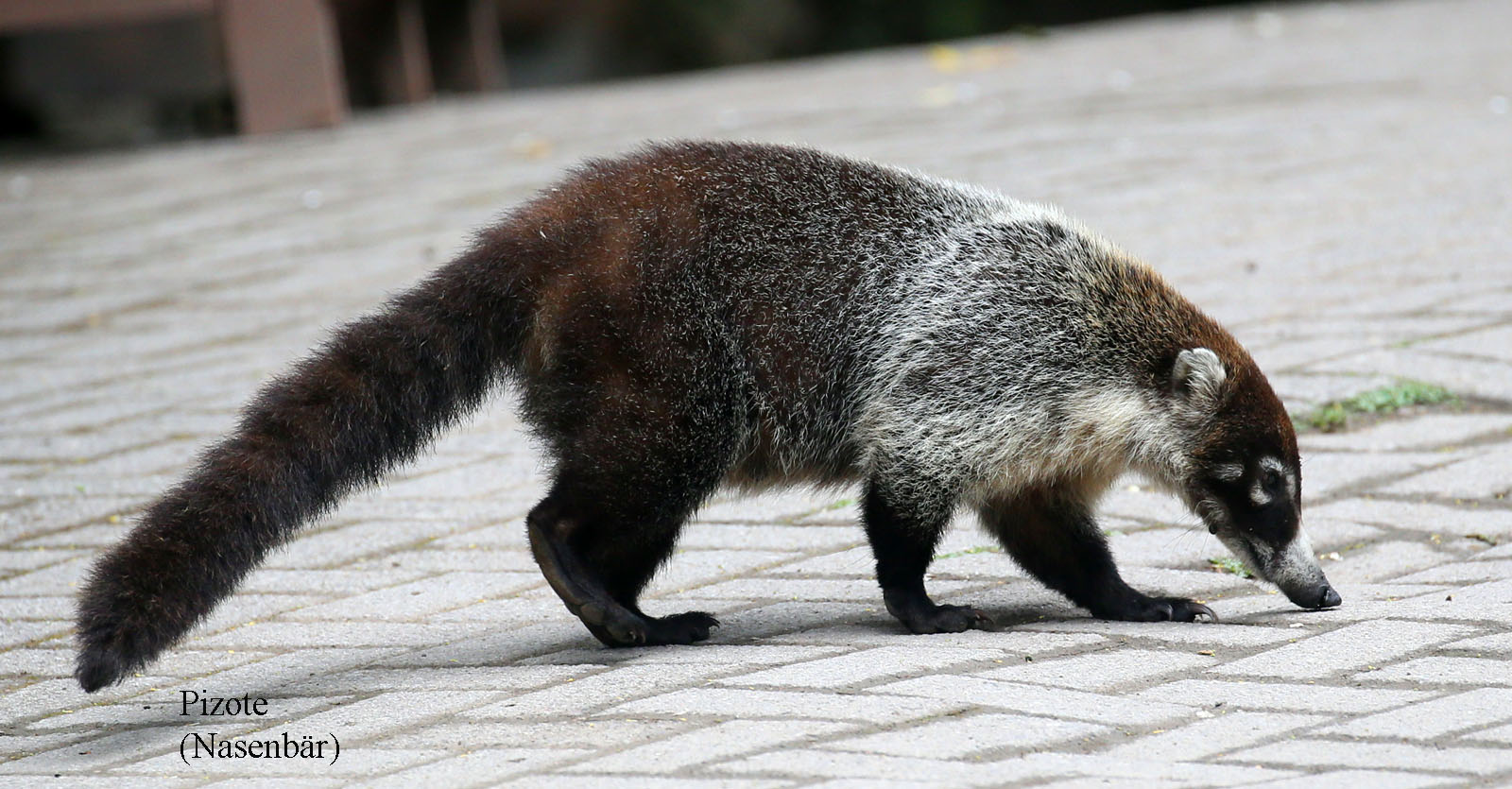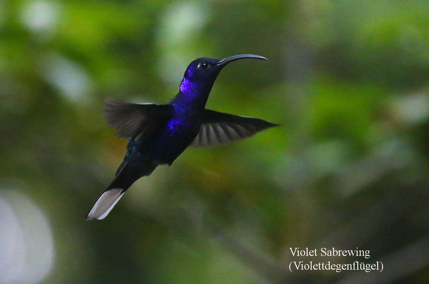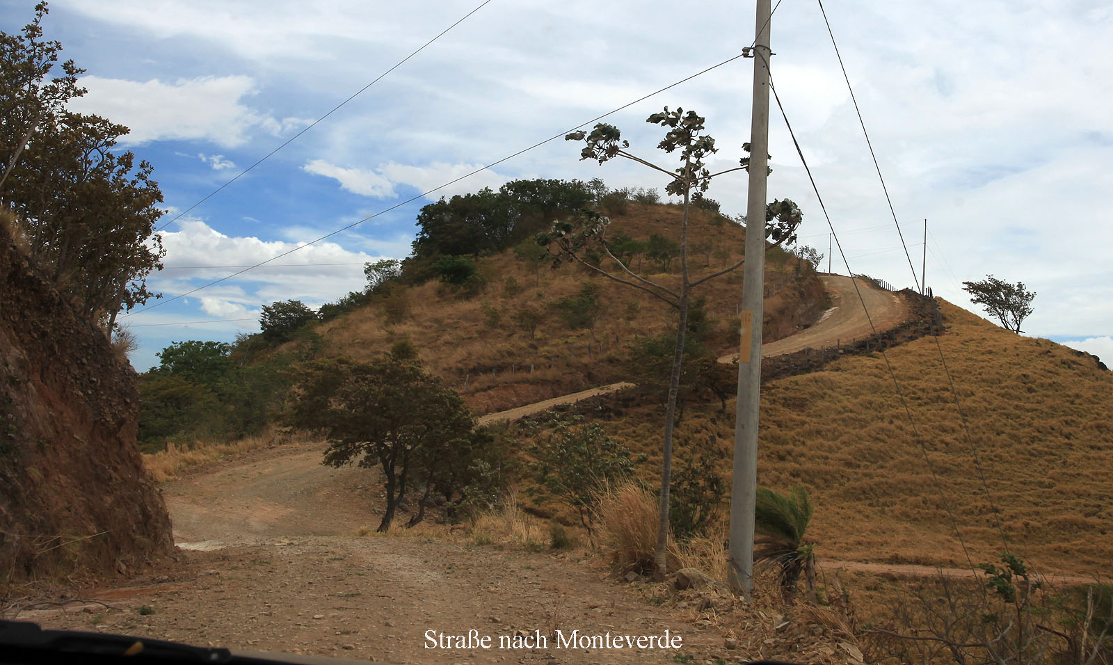 So gestärkt, fuhren wir um 14:15 h zum Monteverde Nationalpark um uns mal zu informieren. Da wir für die verbleibenden 2 Stunden, in denen der Park noch geöffnet war, den vollen Eintrittspreis von jetzt 20 $ pro Person hätten zahlen sollen, verzichteten wir darauf. Der Angestellte an der Kasse, den ich noch vom letzten Jahr kannte und der darüber sehr erfreut war, zeigte uns gleich eine Stelle im Eingangsbereich, wo in letzter Zeit regelmäßig ein Quetzal-Paar zu sehen war, das dort offensichtlich beabsichtigt zu brüten. Da es aber still war, gingen wir die paar Schritte zum nahen gegenüberliegenden Kolibri-Garten. Obwohl das Licht zum fotografieren nicht optimal war, konnten wir zahlreiche Kolibris gut beobachten. Auch ein Pizote (Nasenbär) tauchte aus dem dichten Gebüsch auf. |