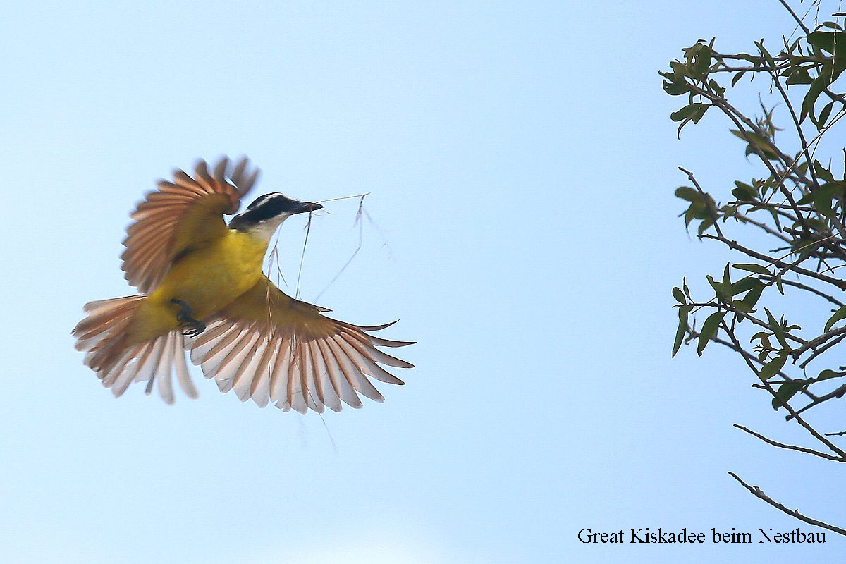 Die 4 Eulen saßen an ihren Platz und auch der Oriole baute weiter an seinem Nest. Da es heute morgen windstill war, konnte ich ein kurzes Video von seinem Kunstwerk machen.
