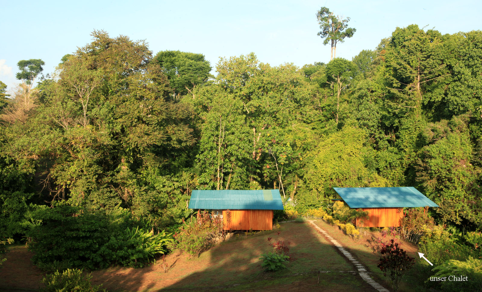 Tomoko wurde gegen 5:00 h wach, ich erst um 5:30 h. Wir hatten beide gut geschlafen. Die Temperatur im Zimmer war sehr angenehm mit 24°. Wir setzten uns auf die Terrasse, schauten in den beginnenden Morgen und lauschten den zahlreichen Vogelstimmen. Der Himmel war noch wolkenlos. |