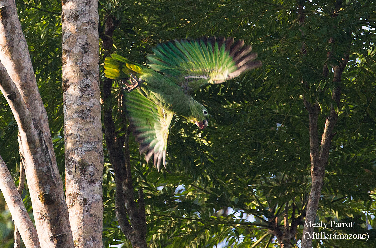 Wir fuhren nochmals runter an den Strand. Bei der Schule, wo wir in den letzten Tagen geparkt und die Roten Aras gesehen hatten, war am heutigen Montag Unterricht. Von allen Seiten kamen Eltern herbei, die ihre Kinder zur Schule brachten. Vielleicht waren deshalb heute morgen keine Aras vor Ort zu sehen. Also fuhren wir wieder zurück und frühstückten erst mal. Cécile und Nicolas, die heute früh abfahren wollten, saßen schon da als wir kamen. Wir unterhielten uns noch eine Weile sehr nett, bevor die beiden die Lodge in ihrem Auto verließen. Wir gingen nach dem Frühstück in unseren Bungalow zurück und packten unsere Sachen zusammen, da wir ebenfalls heute abreisen wollten. Nach einer Weile kam Juan ziemlich aufgeregt zu uns und bat darum, dass wir schnell die Abrechnung durchführen , da er dringend etwas zu erledigen habe. Ich ging ihm nach zur Rezeption und da erfuhren wir, dass Cécile und Nicolas sich auf der Strecke nicht weit von Drake Bay mit ihrem Auto überschlagen hatten und seine Hilfe benötigten. Ziemlich unter Schock bezahlte ich unsere Gesamtrechnung und ging zum Bungalow zurück. Schnell packten wir den Rest unseres Gepäcks zusammen und fuhren um 9:40 h los. Kurz hinter Drake sahen wir dann die Unfallstelle. Auf einem 300 m langen schnurgeraden Stück der unbefestigten Straße hatte Nicolas wohl bei Gegenverkehr einen kleinen Felsblock am Straßenrand gerammt. Da er sicherlich ziemlich schnell unterwegs war, platzte ein Reifen und er landete kopfüber in einem kleinen Bachbett. Wie die beiden aus dem total demolierten auf dem Dach stehenden Wrack unverletzt herausgekommen sind, grenzt an ein Wunder. Beide hatten sich soweit gefasst. Juan war bei ihnen und sie warteten auf die Polizei. Wir konnten nichts anderes tun, als die beiden zu trösten. Gott sei Dank war der Schaden am Auto versichert und sie hofften sogar, bald einen Ersatzwagen zu bekommen. Das wird aber sicher noch eine Weile dauern. Wir verabschiedeten uns und fuhren langsam weiter. Die folgenden Flussdurchfahrten machten wir kurz und kommentarlos ohne Fotos. Bei der Brücke mit den zwei schmalen Fahrstreifen hielt ich an. Tomoko überprüfte den Wasserstand, denn man konnte anstatt dieser Brücke auch den Weg durchs Wasser wählen. Als ihr das Wasser fast bis zum Knie reichte, kehrte sie um und ich beschloss, doch die Brücke zu benutzen, was auch problemlos klappte.
