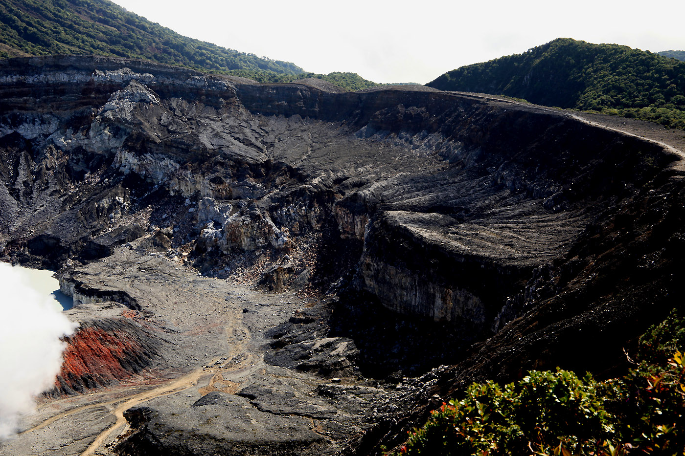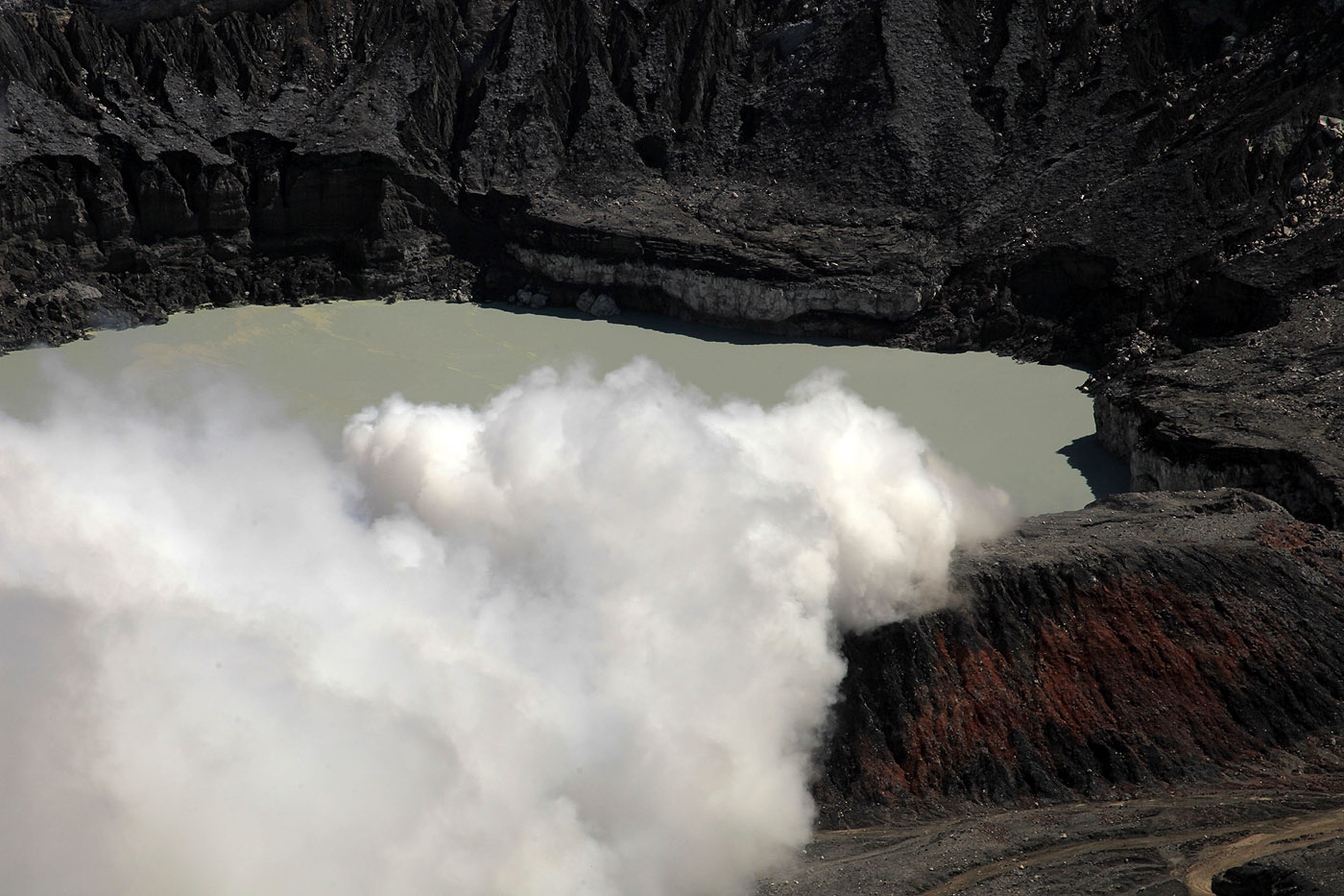Wir gingen weiter und standen kurz darauf auf einer Plattform in 2.570 m Höhe und blickten in den Krater des Vulkans. Die Sicht war so früh am Morgen perfekt. Aus dem Kratersee, gefüllt mit äußerst ätzendem Wasser, stiegen Dämpfe auf. Ein Schild warnte davor, nicht länger als 20 Minuten zu verweilen, da die ätzenden Dämpfe gefährlich werden könnten. |