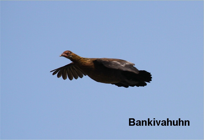 Pulau Ubin ist eine kleine Insel zwischen Singapur und Malaysia. Sie gehört zu Singapur, ist aber von tropischem Regenwald bedeckt und somit landschaftlich sehr reizvoll. Bei der Ankunft erwartete uns ein kleines Dorf, das hauptsächlich aus Fahrradvermietungen zu bestehen schien. Da heute Sonntag ist, waren ziemlich viele Leute unterwegs, hauptsächlich Einwohner aus Singapur, die das schöne Wetter für einen Ausflug nutzten. Wir mieteten uns 2 Fahrräder und fuhren in östliche Richtung los, bis wir nach ungefähr 5 km das östliche Ende der Insel erreichten. Hier wanderten wir auf einem Rundweg durch die Mangroven. Mindestens 10 Hähne der hier vorkommenden Art „Bankivahuhn“ , ein wilder Vorfahre unseres heutigen Haushuhns, flogen über uns hinweg. Diese Tiere leben im Dschungel seit ca. 4000 Jahren. Des weiteren sahen wir noch folgende Vögel: Rötelspecht, Grünrücken-Nektarvogel, Halsbandliest, Dajaldrossel, Purpurkehl-Nektarvogel, Schwarzbauchnonne. |