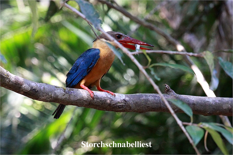 Des weiteren sahen wir: Brustbandeisvogel (Blue-banded Kingfisher), Kappenliest (Black-capped Kingfisher), zwei Braunschwanz-Seeadler (Lesser Fish-Eagle), Mohrenkuckuck (Greater Coucal), einen weiteren Kuckuck (Chestnut-bellied ? Malkoha), 4 Kellenschnabel (Black-and-red Broadbill), Mangrovenreiher (Little Heron), Storchschnabelliest (Stork-billed Kingfisher), Schwefelbülbül (Yellow-bellied Bulbul), Schamadrossel (White-rumped Shama), Goldbrustgerygone (Golden-bellied Gerygone), Grauschneidervogel (Ashy Tailorbird), Gelbscheitelbülbül (Straw-headed bulbul). |