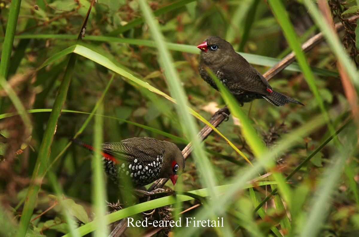 Den "Tree Top Walk", das Ziel vieler Touristen, wo man auf 600 m Länge einen Steg in luftiger Höhe durch die Baumwipfel gebaut hat, ließen wir links liegen. Stattdessen begaben wir uns auf den "Ancient Walk", einen Fußweg, der am Boden unter den mächtigen Bäumen hindurchführt. Das war sehr eindrucksvoll. Wir waren zunächst die einzigen Besucher hier. An einer entlegenen Stelle entdeckte Tomoko zum ersten Mal zwei Red-eared Firetails, die sie auch fotografieren konnte. Ich kam leider etwas zu spät. |