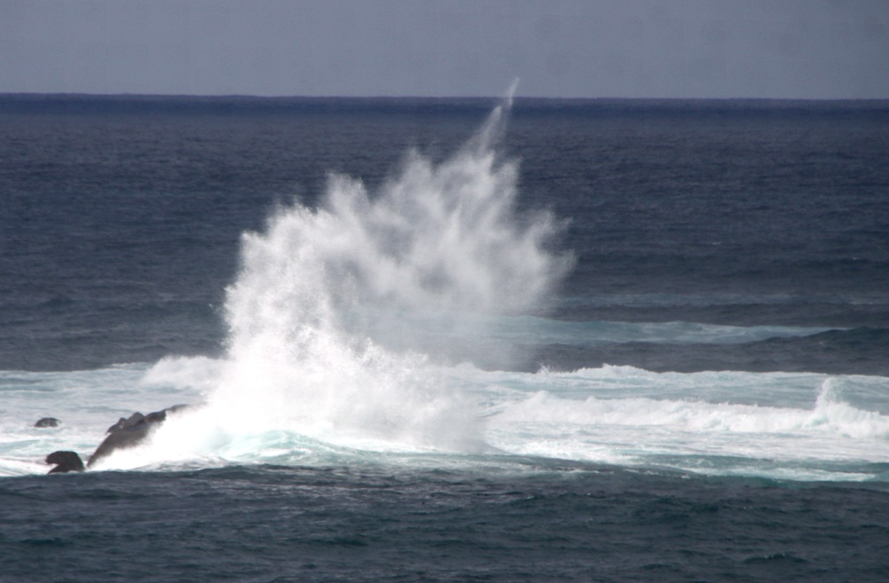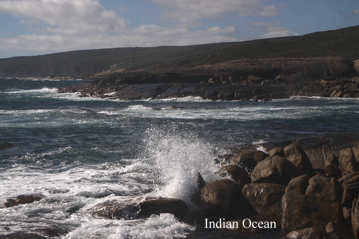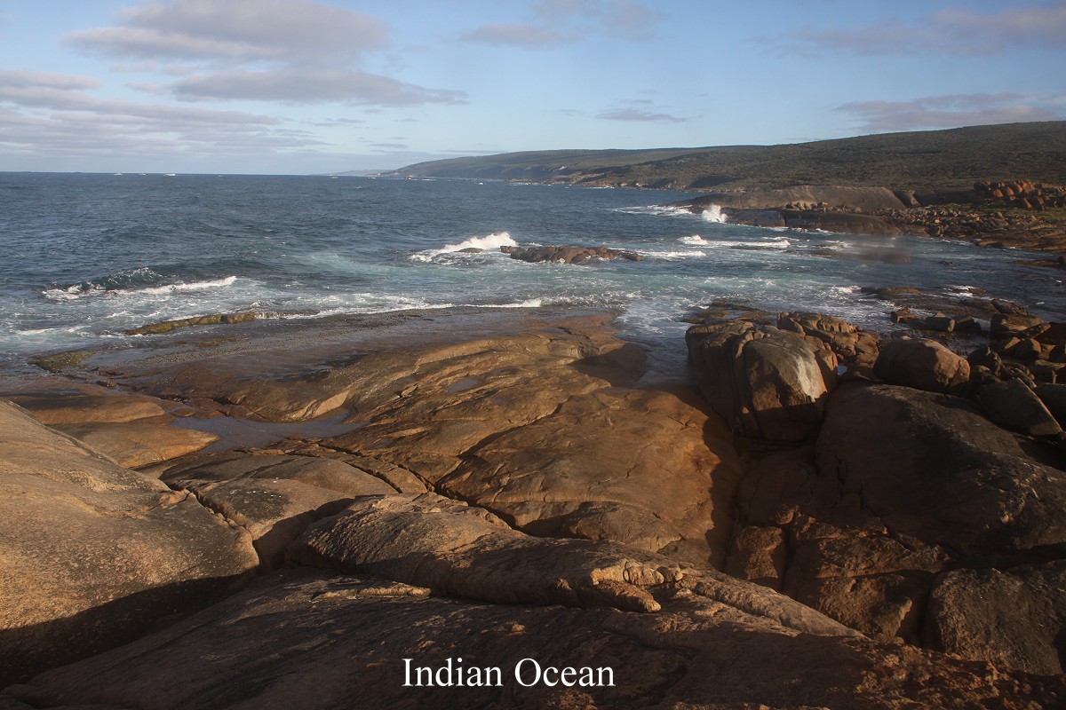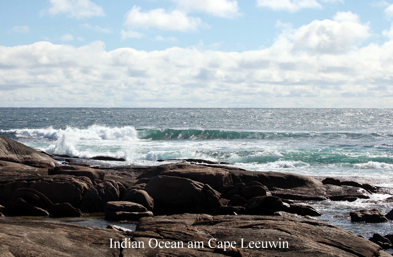 Wir warteten eine ganze Weile, aber leider ließ sich keiner blicken. Dafür hatten wir einen herrlichen Blick auf die anrollenden Wellen des Indischen Ozeans, die sich an den runden Felsen brachen. |